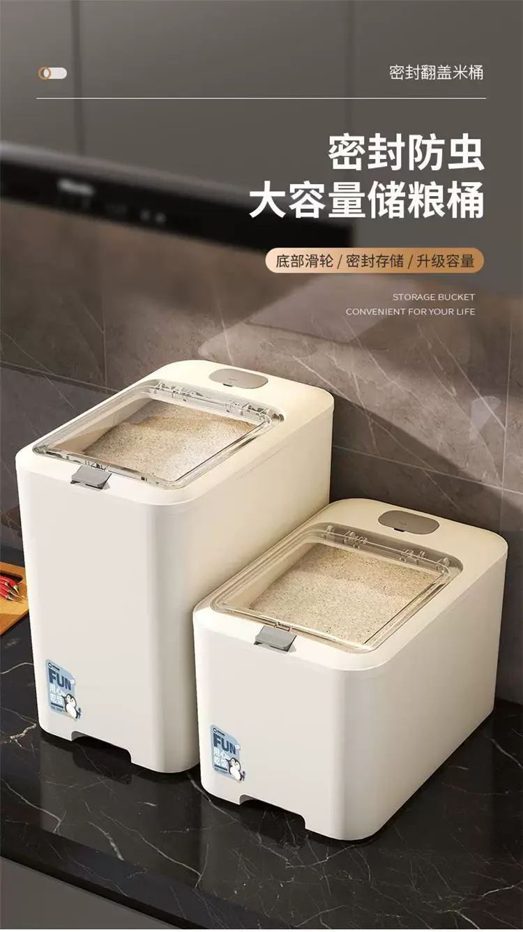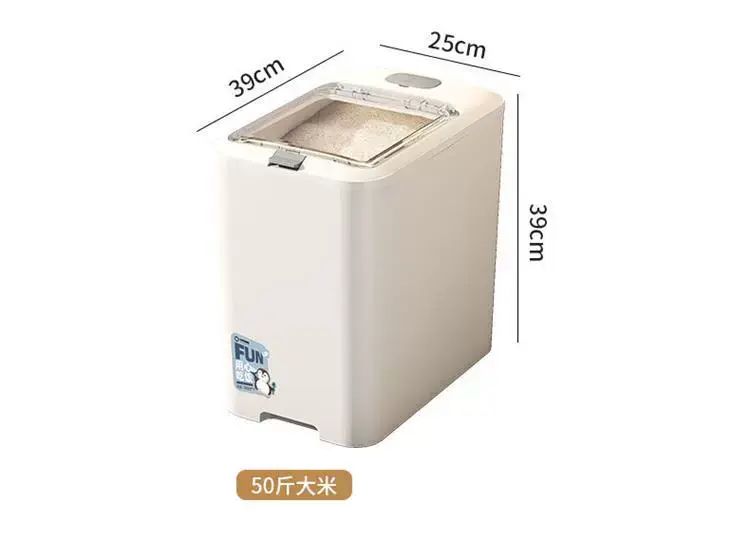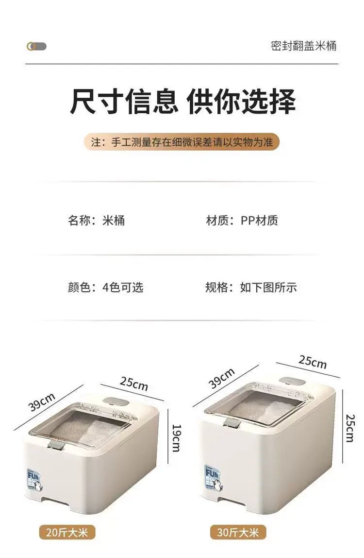 | Description | 新款加厚带盖米桶防虫防潮密封20斤30大容量50斤装五谷杂粮收纳桶;;颜色分类:菱花白-奶油色_30斤 |