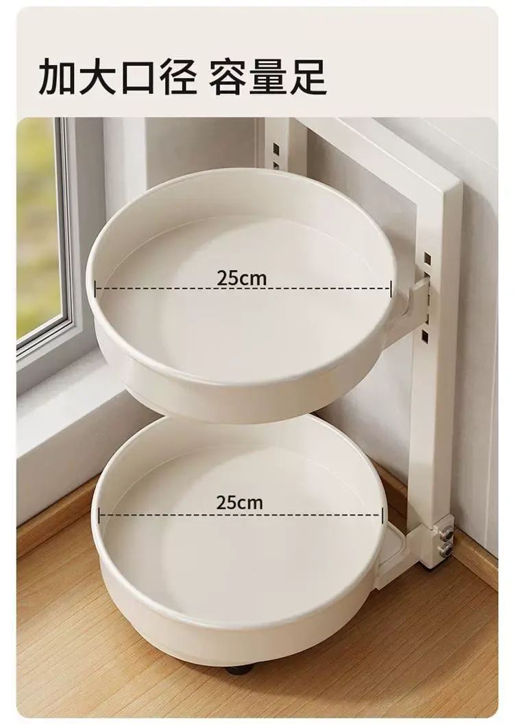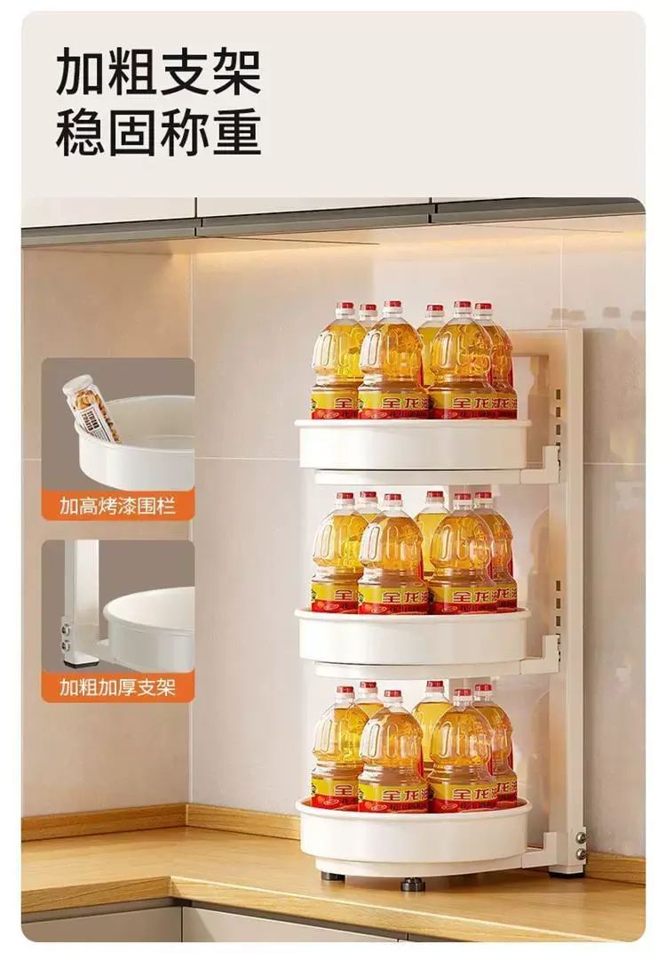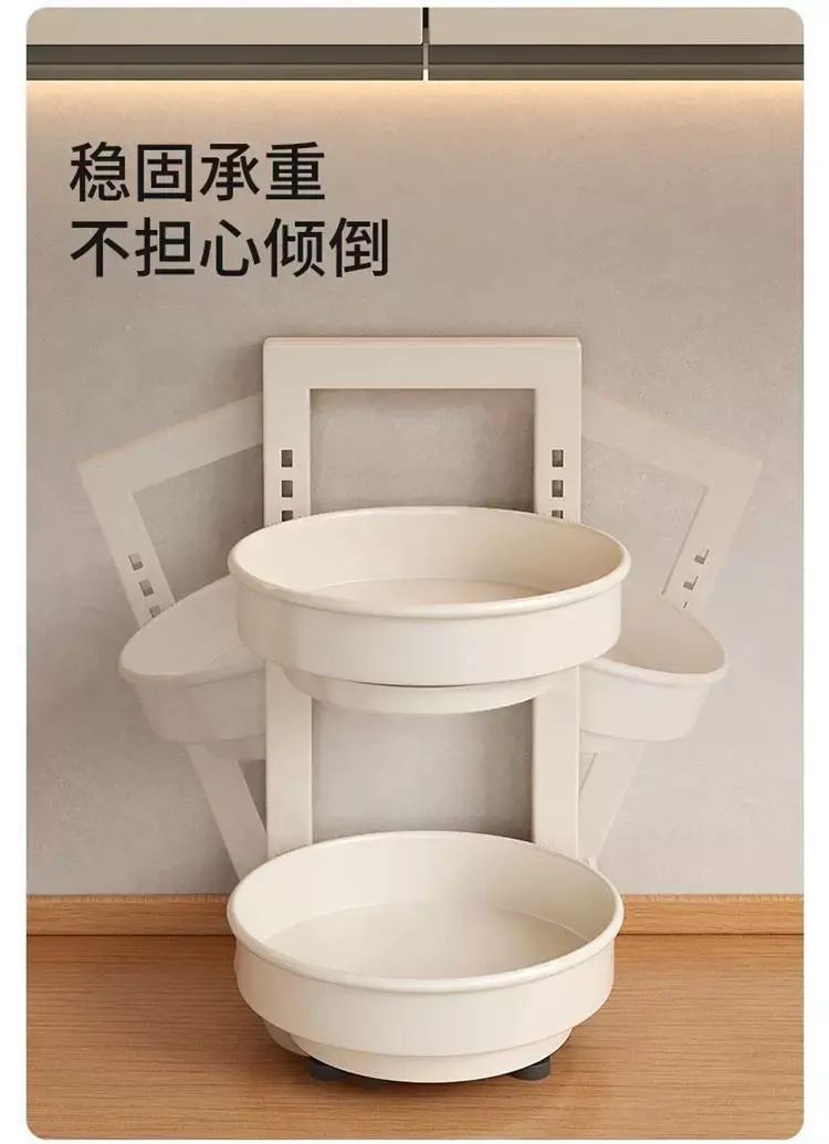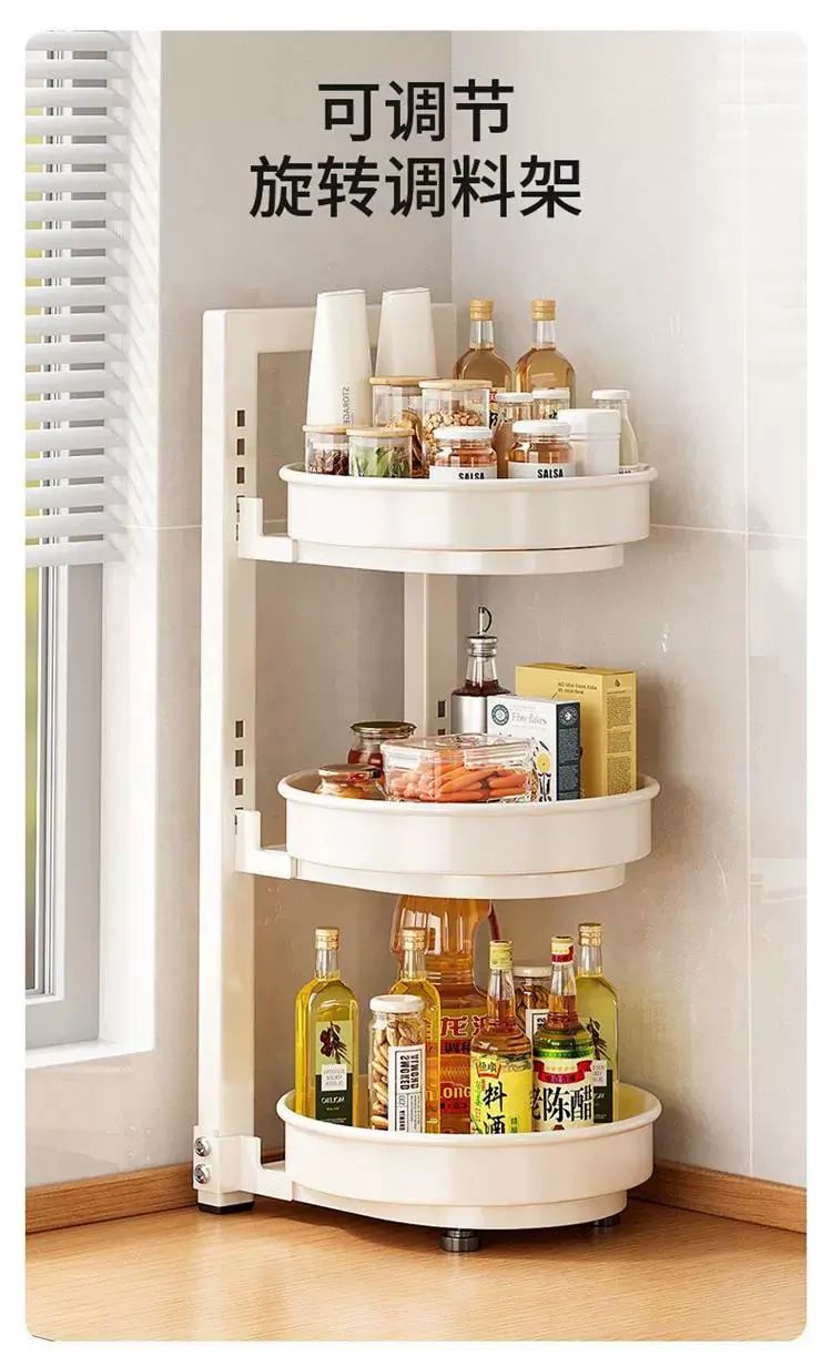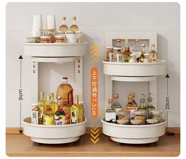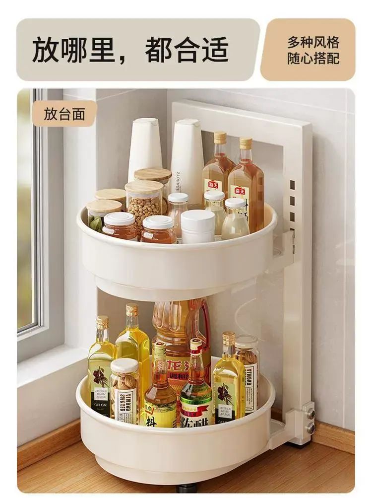 | Description | 旋转调料置物架厨房调料品架子厨房家用台面转角佐料调味品收纳架;;颜色分类:奶白/2层/盘直径254mm/总高45cm |