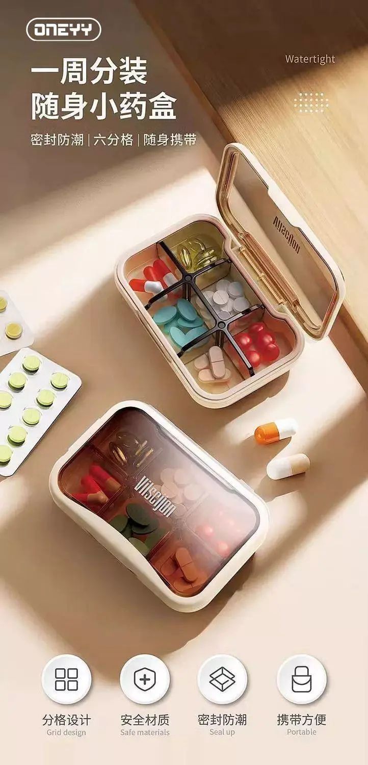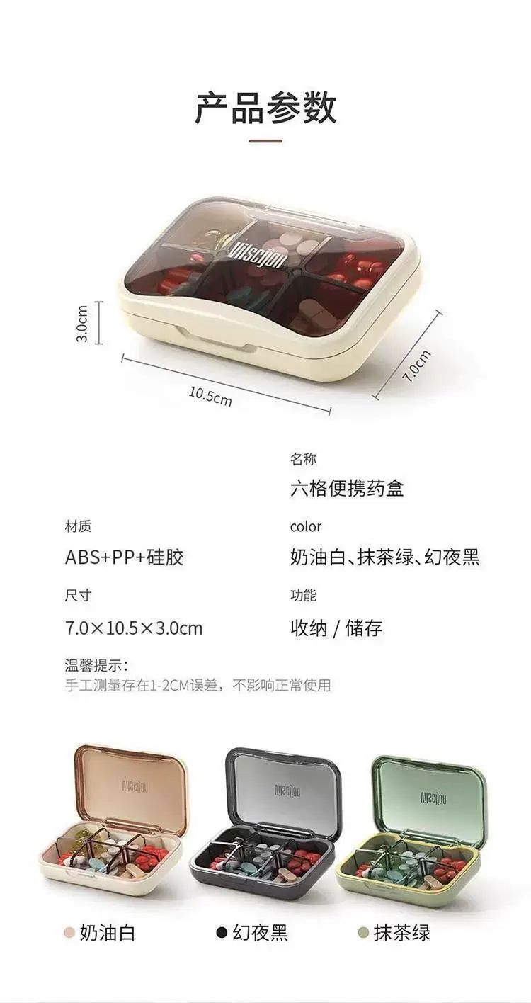 | Description | 日式小药盒便携式一周七天药品分装盒一日三餐密封迷你随身分药盒;;颜色分类:日本 浅绿 六分格【便携密封食品级材质】 |