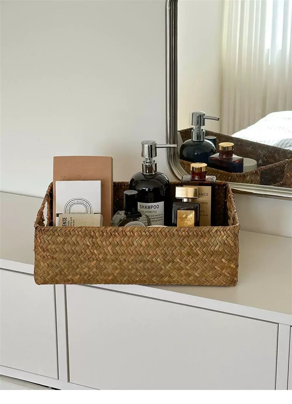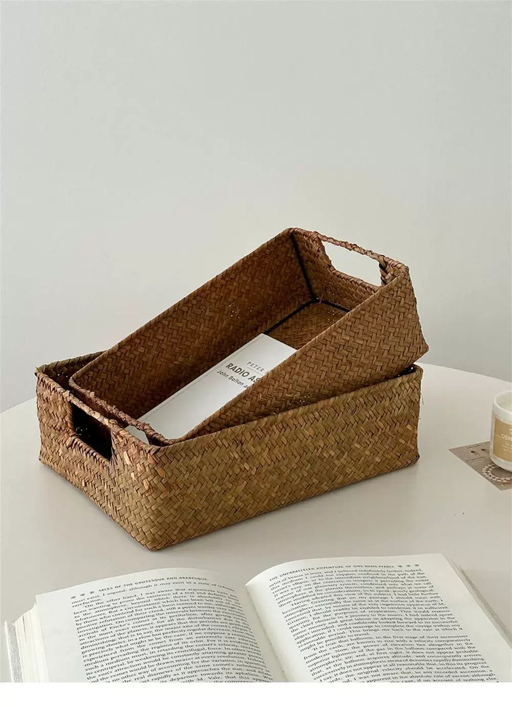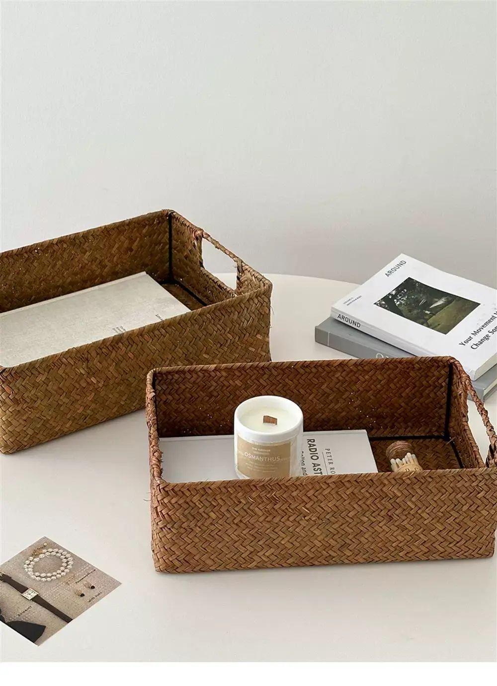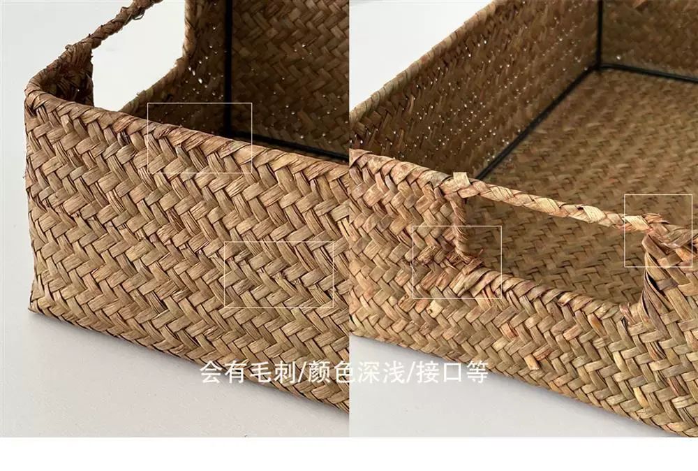 | Description | 日式桌面收纳盒手工编织长方形收纳筐ins茶几零食书桌杂物收纳篮;;颜色分类:手提款-大号 |