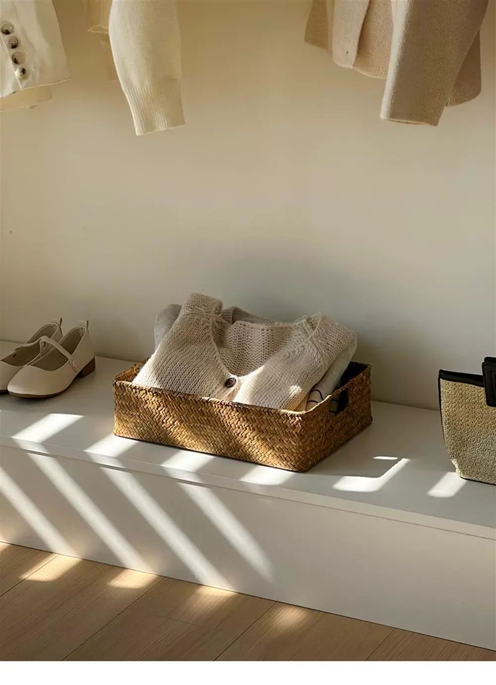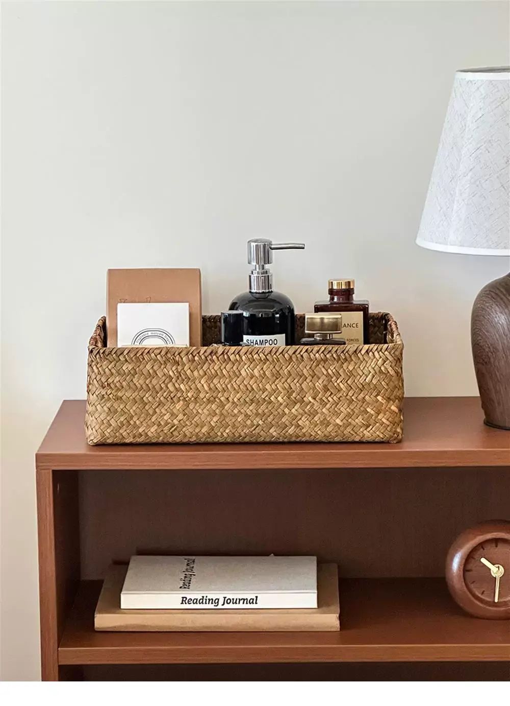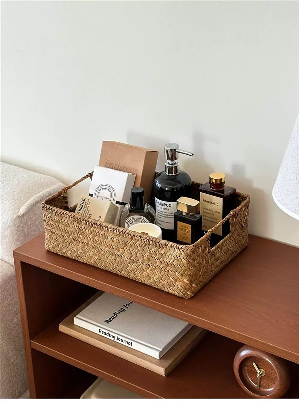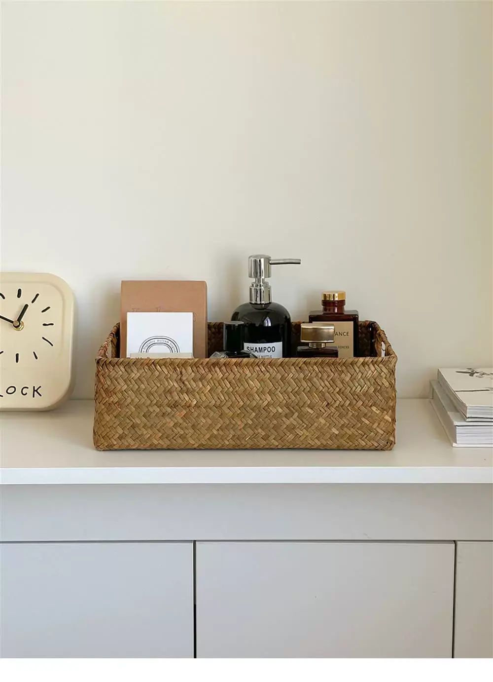 | Description | 日式桌面收纳盒手工编织长方形收纳筐ins茶几零食书桌杂物收纳篮;;颜色分类:手提款-大号 |