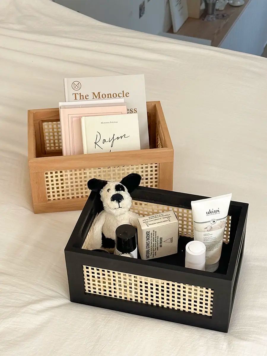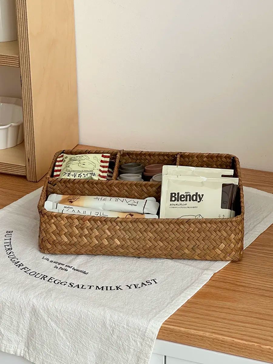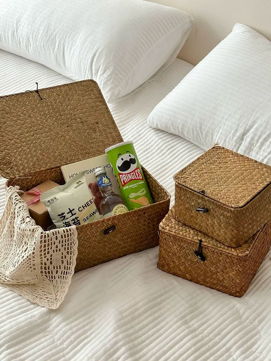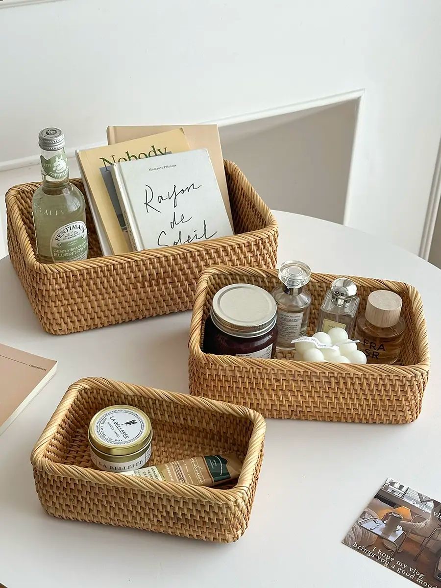 | Description | 日式桌面收纳盒手工编织长方形收纳筐ins茶几零食书桌杂物收纳篮;;颜色分类:手提款-大号 |