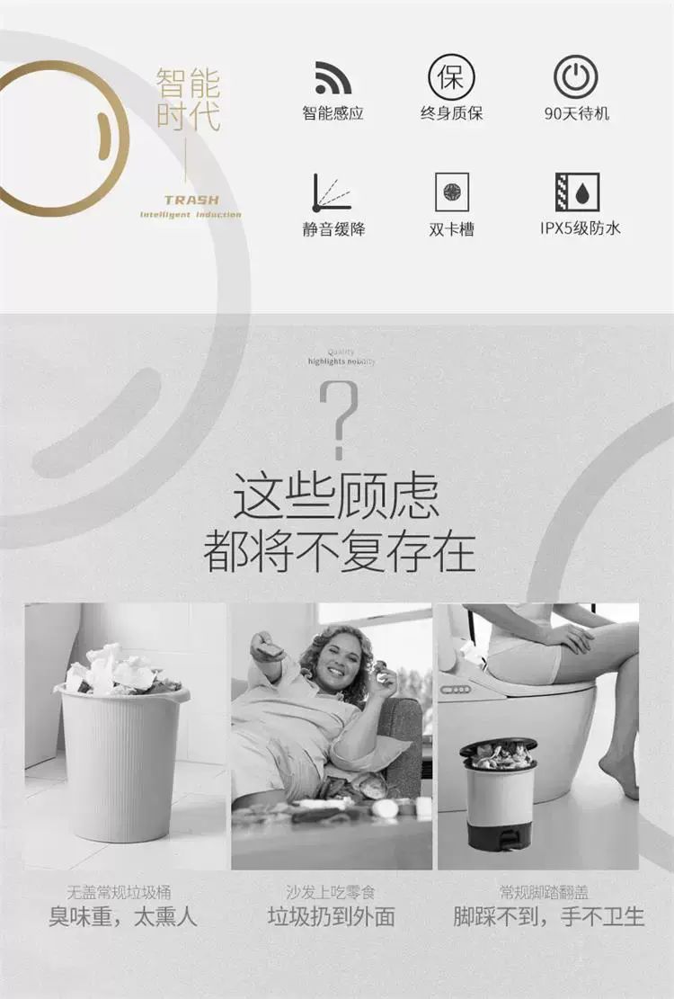 | Description | 智能感应垃圾桶新款家用卧室客厅卫生间厕所防水带盖大容量纸篓筒;;件数:圆形粉色【防水/防臭】;颜色分类:8L电池版 |