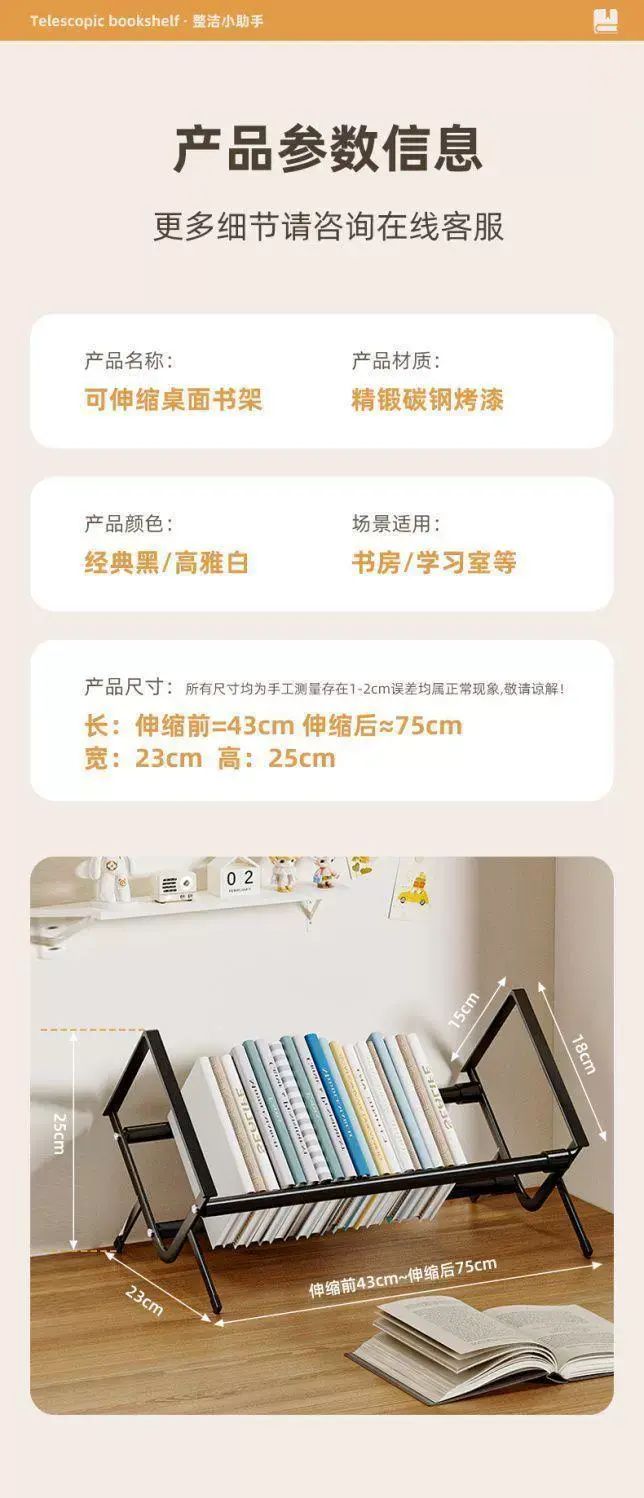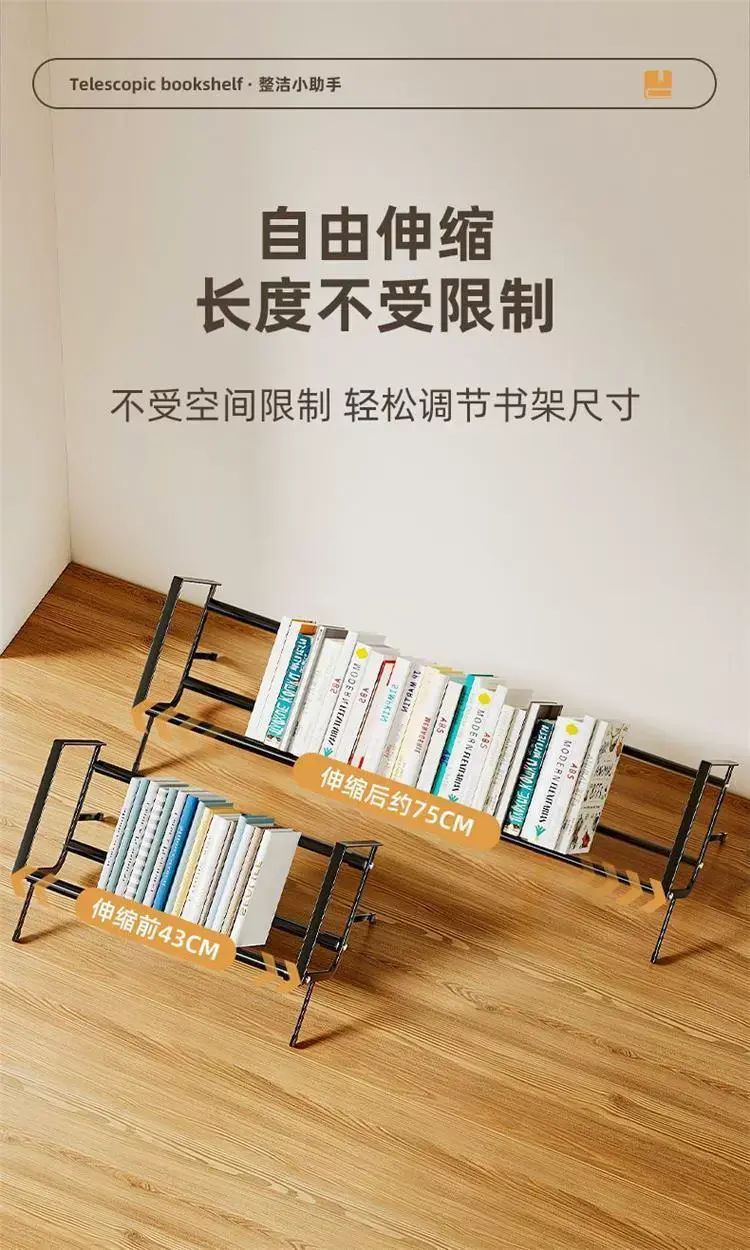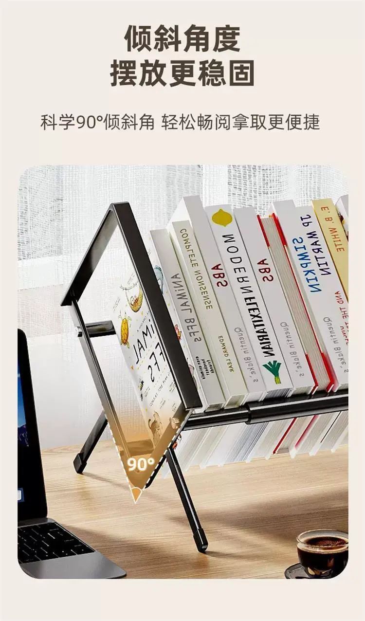 | Description | 书架桌面置物架桌上书立架可伸缩儿童铁艺台面飘窗办公桌简约收纳;;颜色分类:黑/可伸缩/宽229mm/90度稳定结构 |