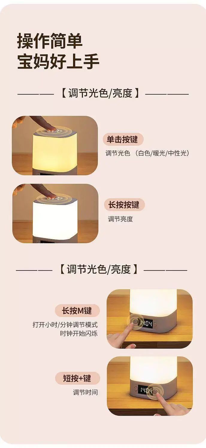 | Description | 乐居宝护眼小夜灯照明灯婴儿睡眠拍拍触摸氛围台灯数显时钟床头灯;;颜色分类:【乐居宝】小夜灯全光谱触摸款_至臻智能时钟【10000充插两用】+超亮续航 |