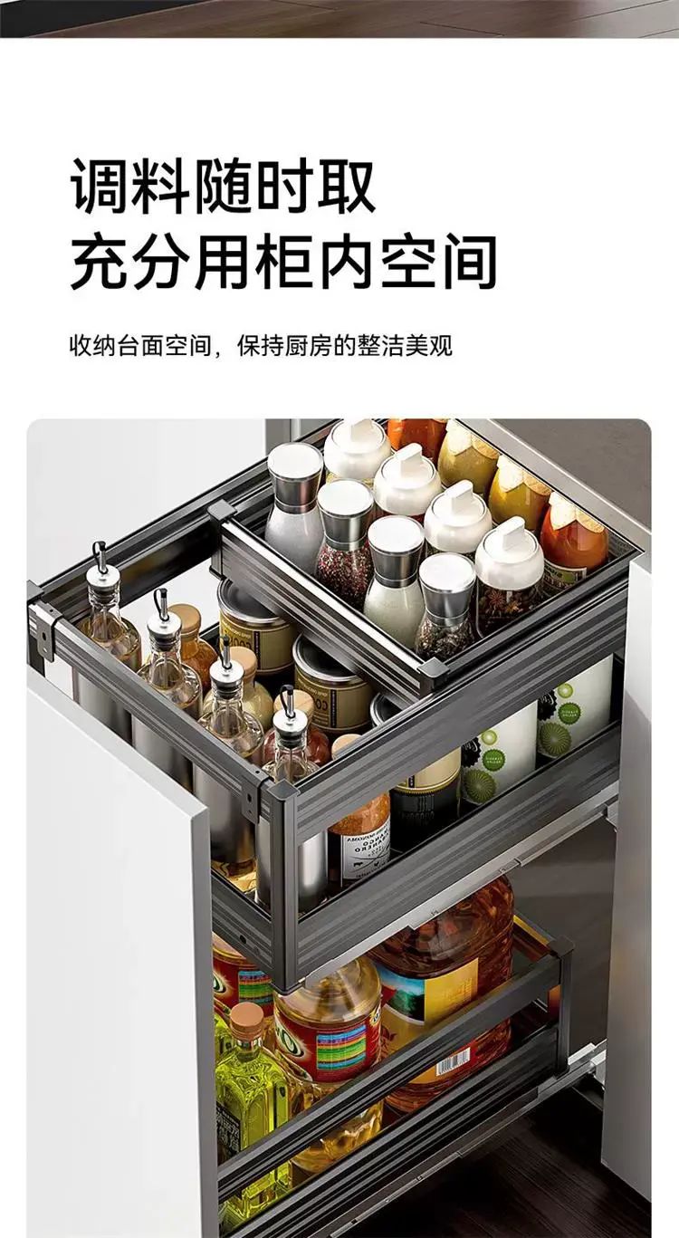 | Description | 橱柜调味拉篮厨房三层抽屉式调味篮铝合金抽中抽置物架阻尼滑轨;;颜色分类:全铝抽中抽调味篮420深【门板不脱落】_【安装尺寸250-300mm】300柜 |