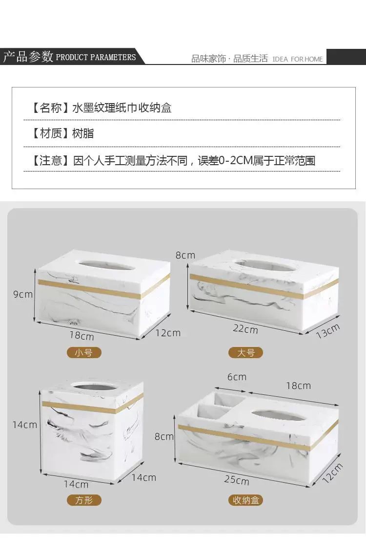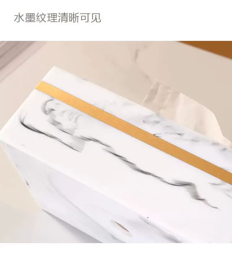 | Description | 水墨风纸巾盒客厅轻奢家用茶几桌面收纳纸抽盒酒店大理石纹抽纸盒;;件数:标准;颜色分类:白色金纸巾盒(大) |