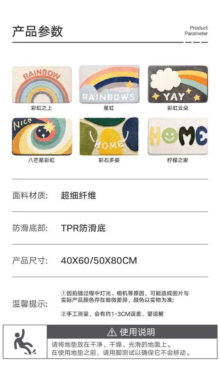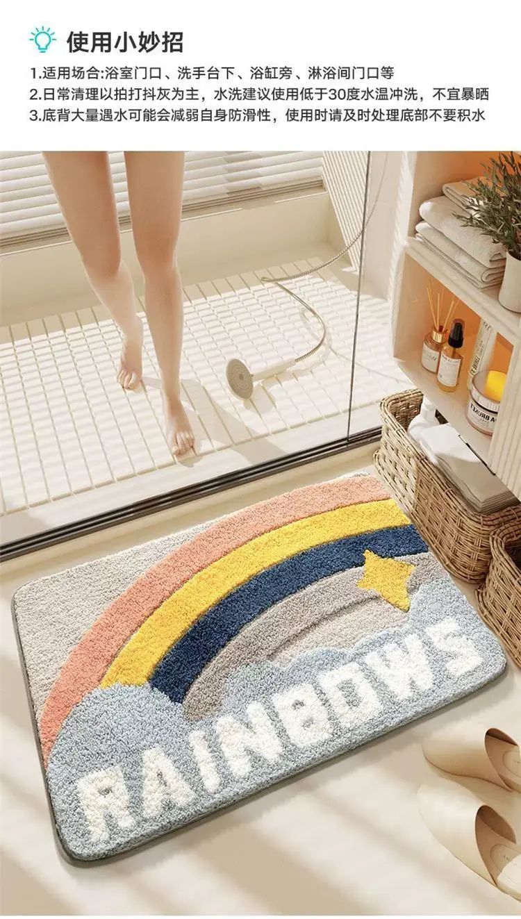 | Description | 浴室吸水地垫防滑加厚家用卫生间地毯厕所门口速干脚踩垫耐脏;;件数:50x80cm【B防滑耐磨】;颜色分类:泡澡 |