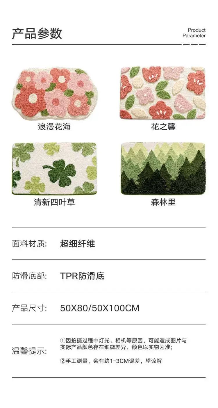 | Description | 浴室地垫入户门口卫生间脚垫吸水防滑垫子厕所洗手间卫浴地毯;;件数:50x80cm;颜色分类:浪漫花海 |