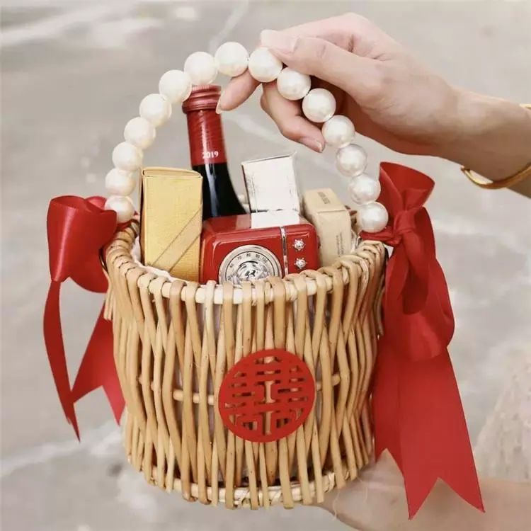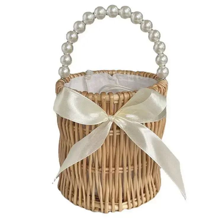 | Description | 珍珠手提花篮编织包包藤编柳编儿童小篮子喜铺伴手礼品包装篮子;;颜色分类:珍珠链肩带 |