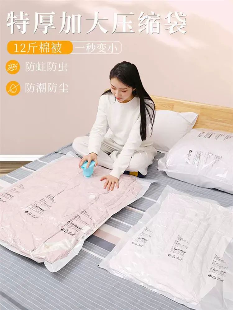 | Description | 真空压缩袋装棉被子衣服收纳袋特大号加厚学生宿舍整理打包收纳袋;;颜色分类:3只装+电泵_100*80 |