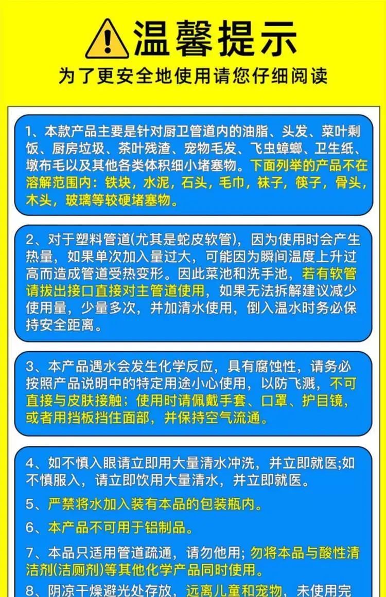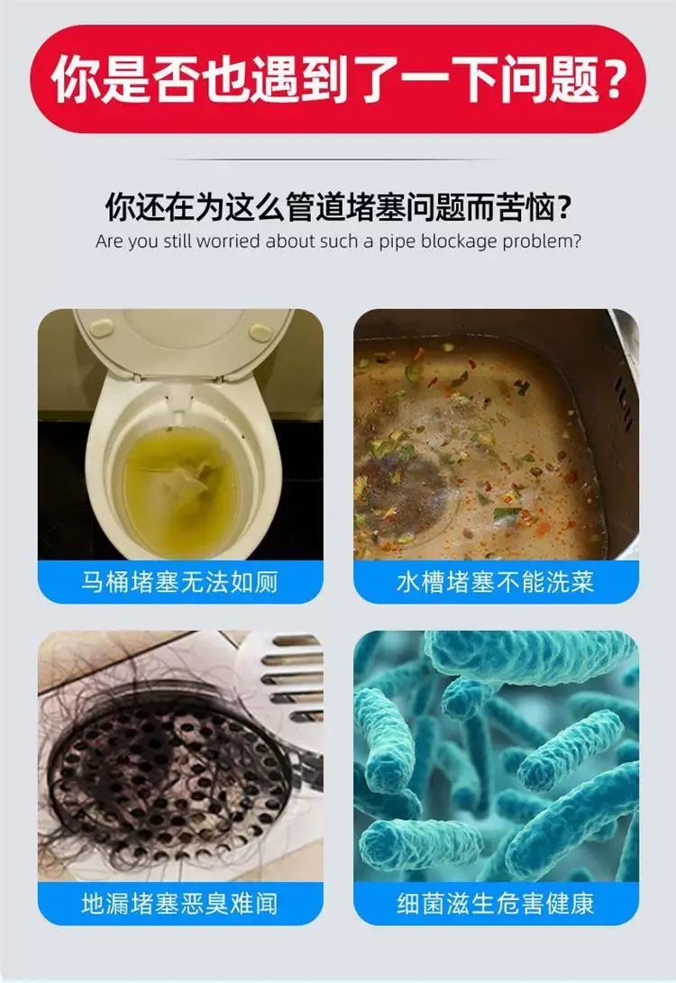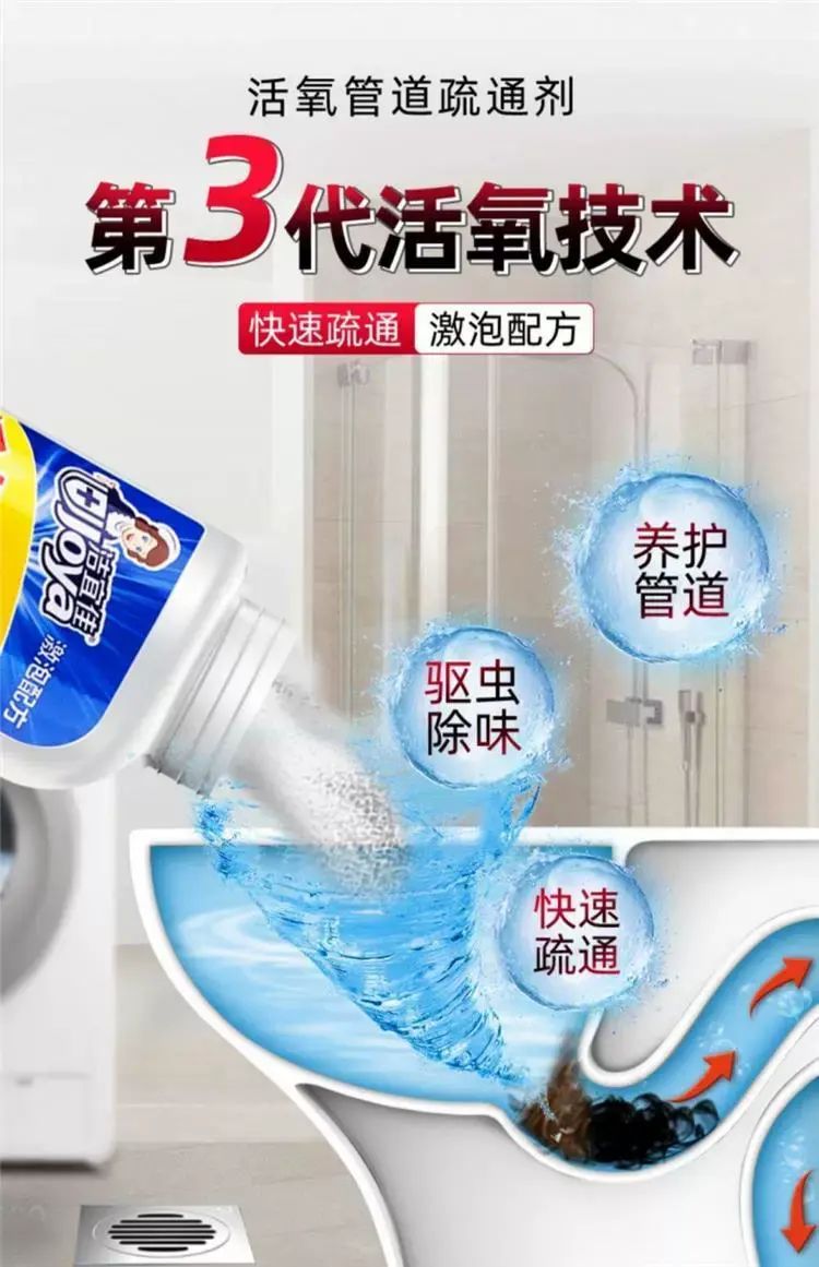 | Description | 管道疏通剂强力卫生间马桶地漏厨房下水道油污堵塞厕所除臭;;颜色分类:管道疏通2瓶+袋装*2 |