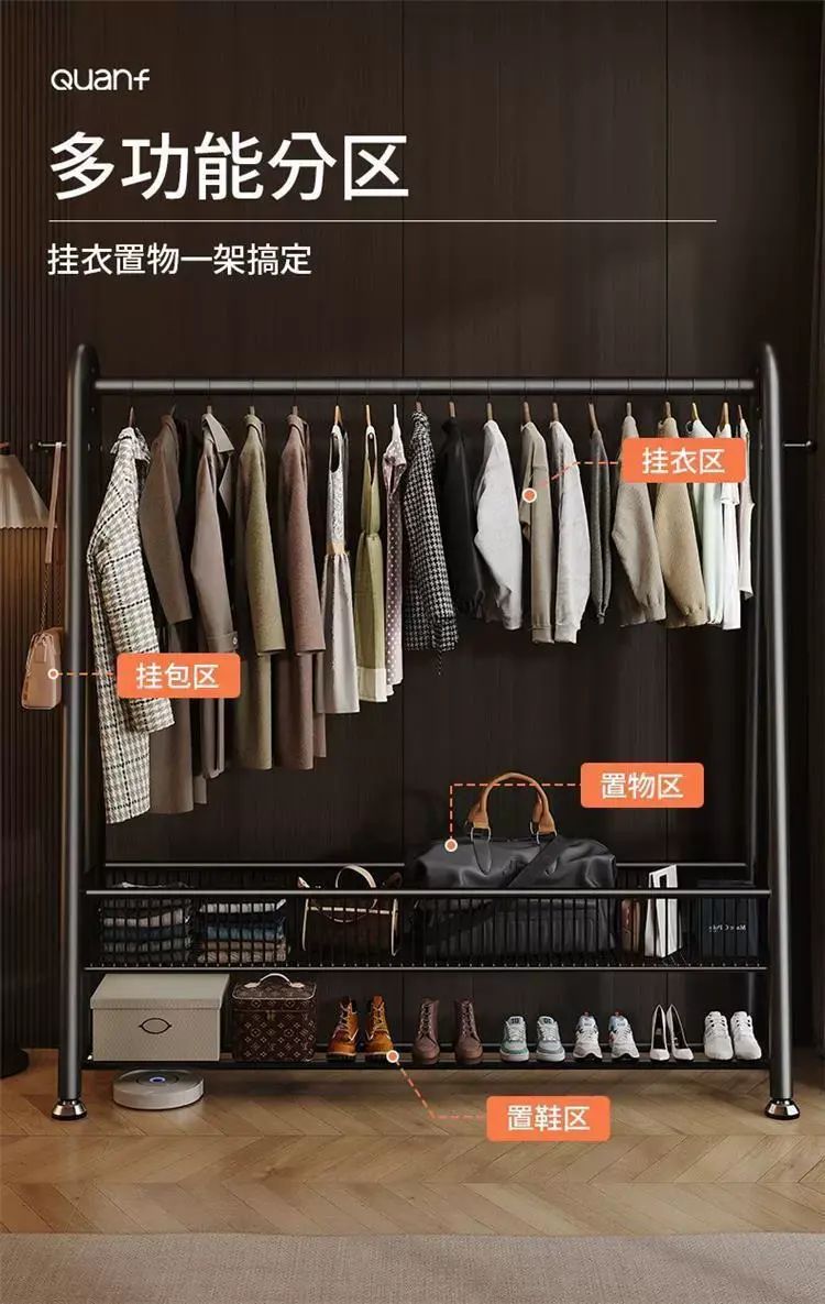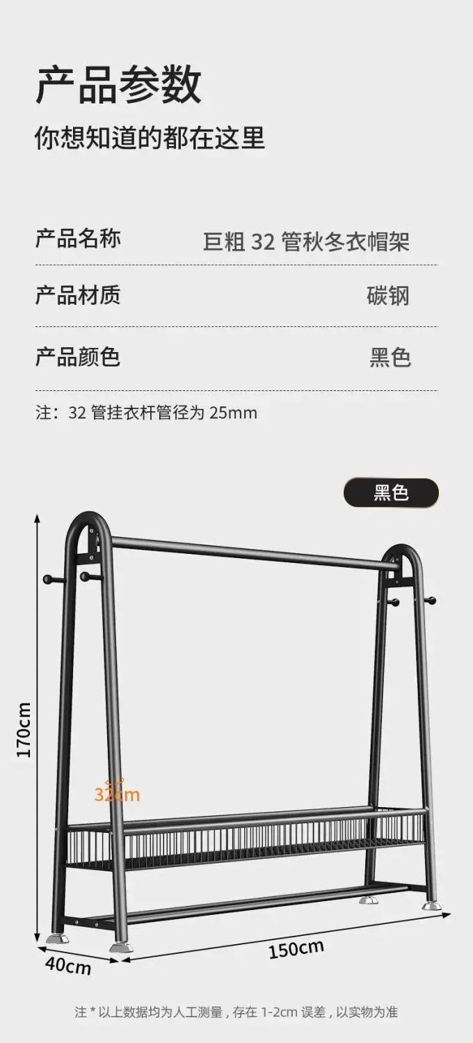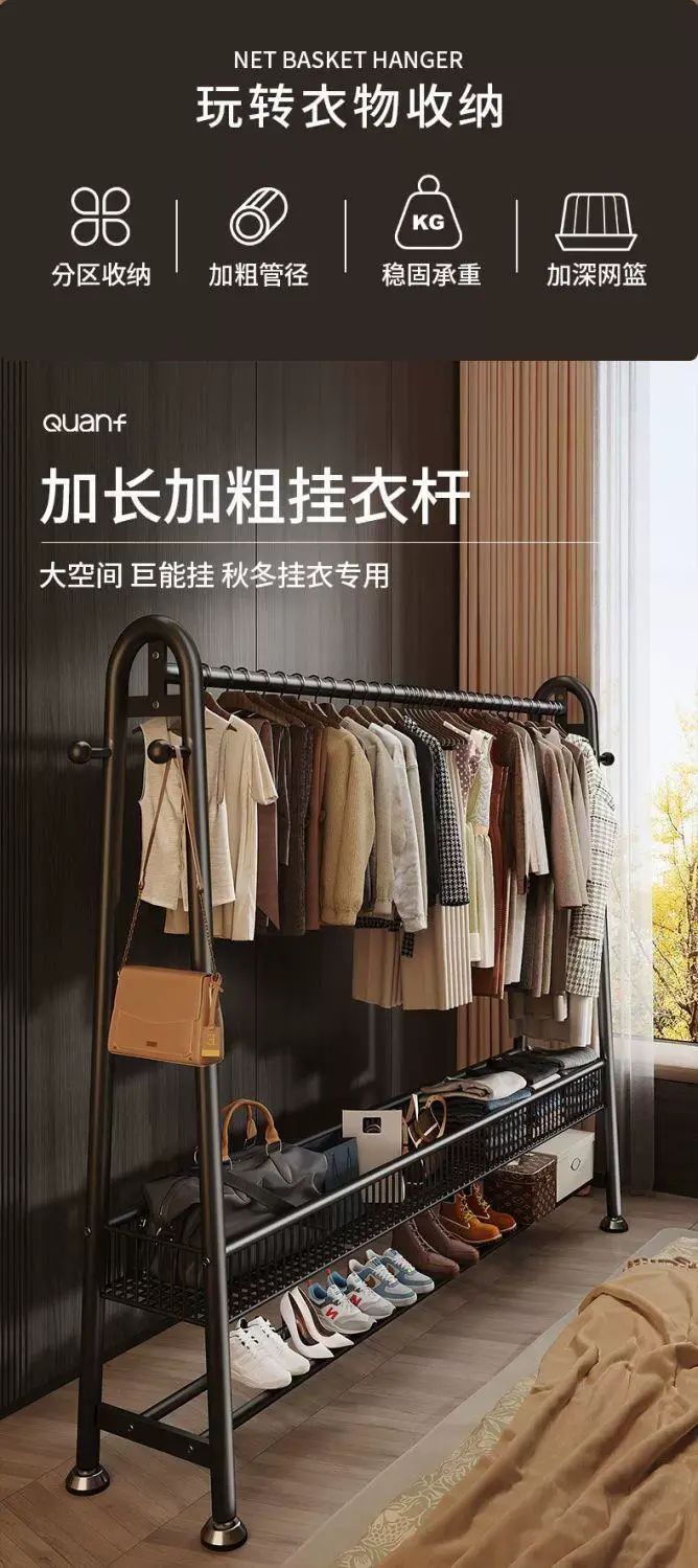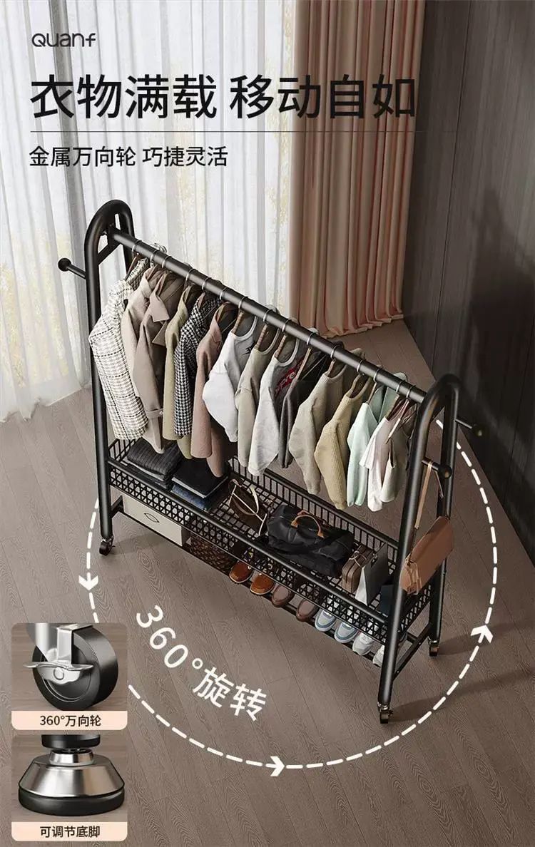 | Description | 简易衣帽架可移动晾衣架落地室内房间挂衣架子家用衣服卧室收纳架;;颜色分类:2层收纳/1置物筐/1置物架/周长32cm管_长100cm/高150cm/360万向轮*4 |