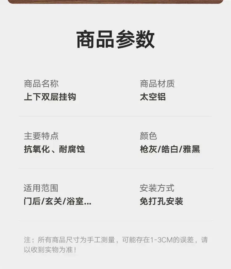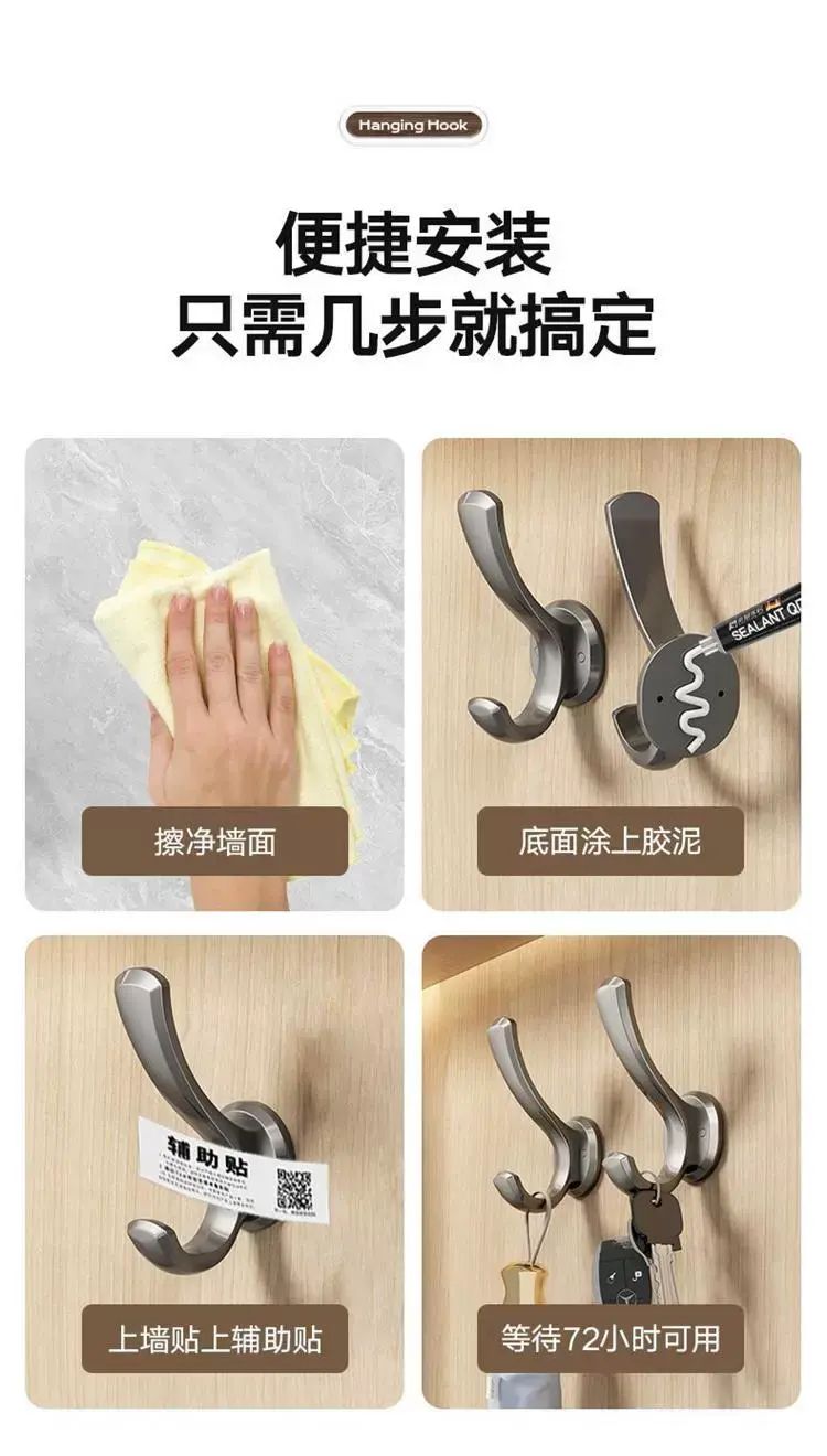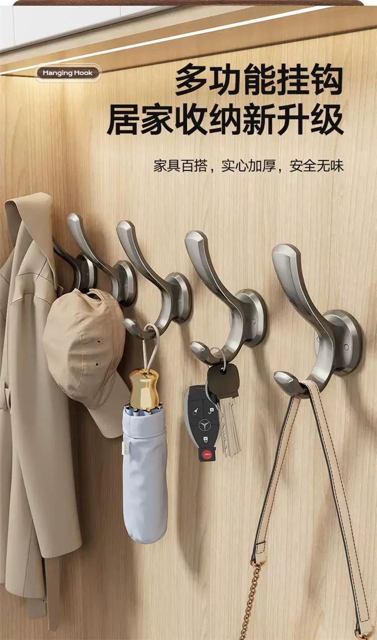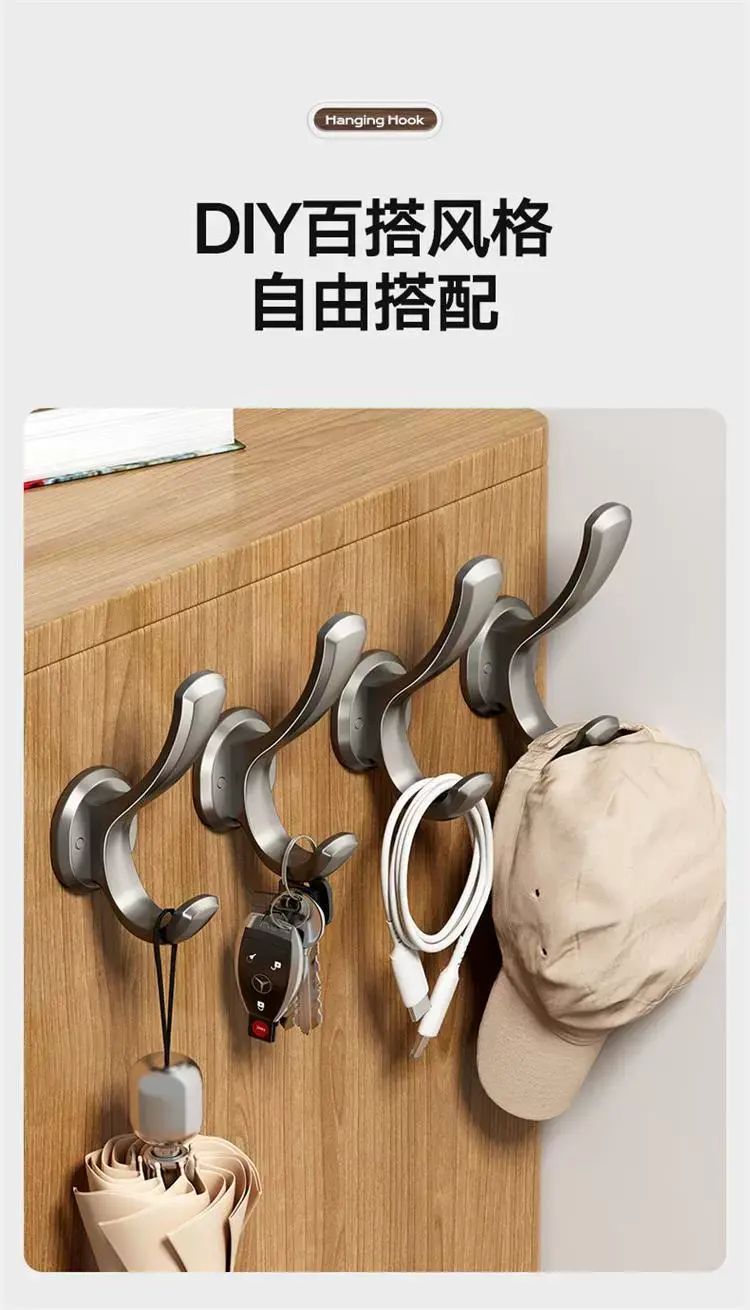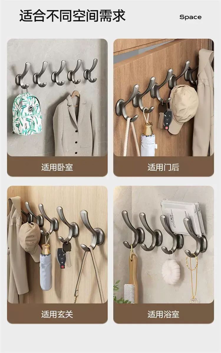 | Description | 美瑞德太空铝挂钩粘胶强力免打孔粘钩门后挂衣钩浴室厨房墙壁收纳;;颜色分类:枪灰-加厚凤尾钩 3个 |