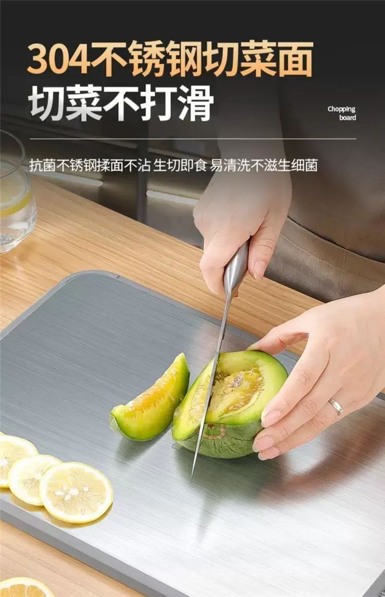 | Description | 菜板抗菌防霉家用双面不锈钢切菜水果砧板厨房加厚案板刀切菜;;颜色分类:中号 |
