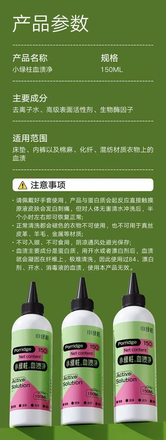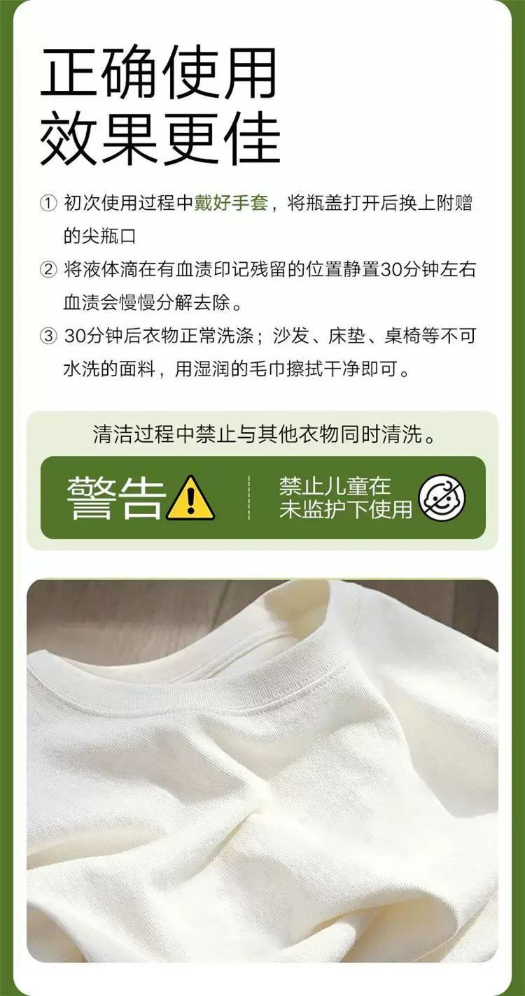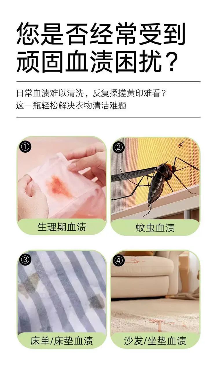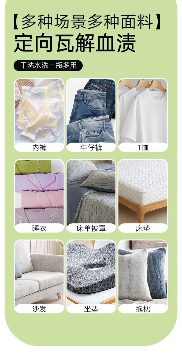 | Description | 血渍净老血污血迹大姨妈血去除剂内衣裤专用去血渍清洗剂;;件数:标准;颜色分类:1瓶血渍净(体验装) |