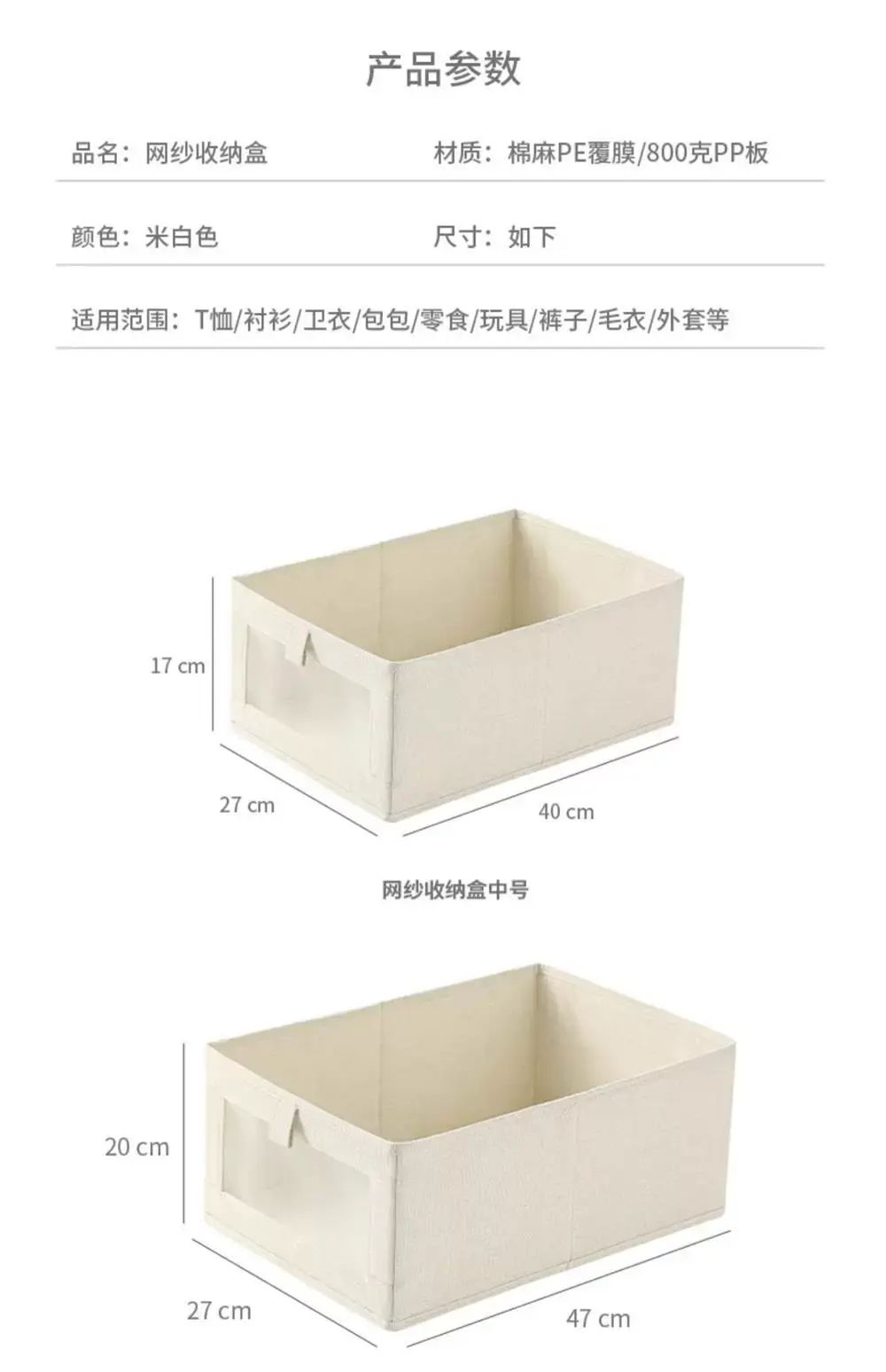 | Description | 衣服收纳盒可折叠裤子pp板家用抽屉式布艺衣物整理箱衣柜分层神器;;颜色分类:【买一送一】米白色★中号-加厚棉麻 |