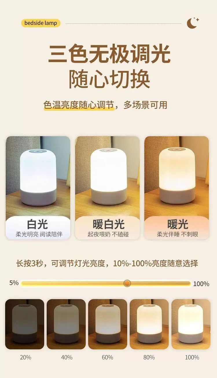 | Description | 护眼小夜灯睡眠夜用充电触摸氛围灯宝妈喂奶寝室台灯床头灯;;颜色分类:5200HWH+三色光【充电遥控款】 |