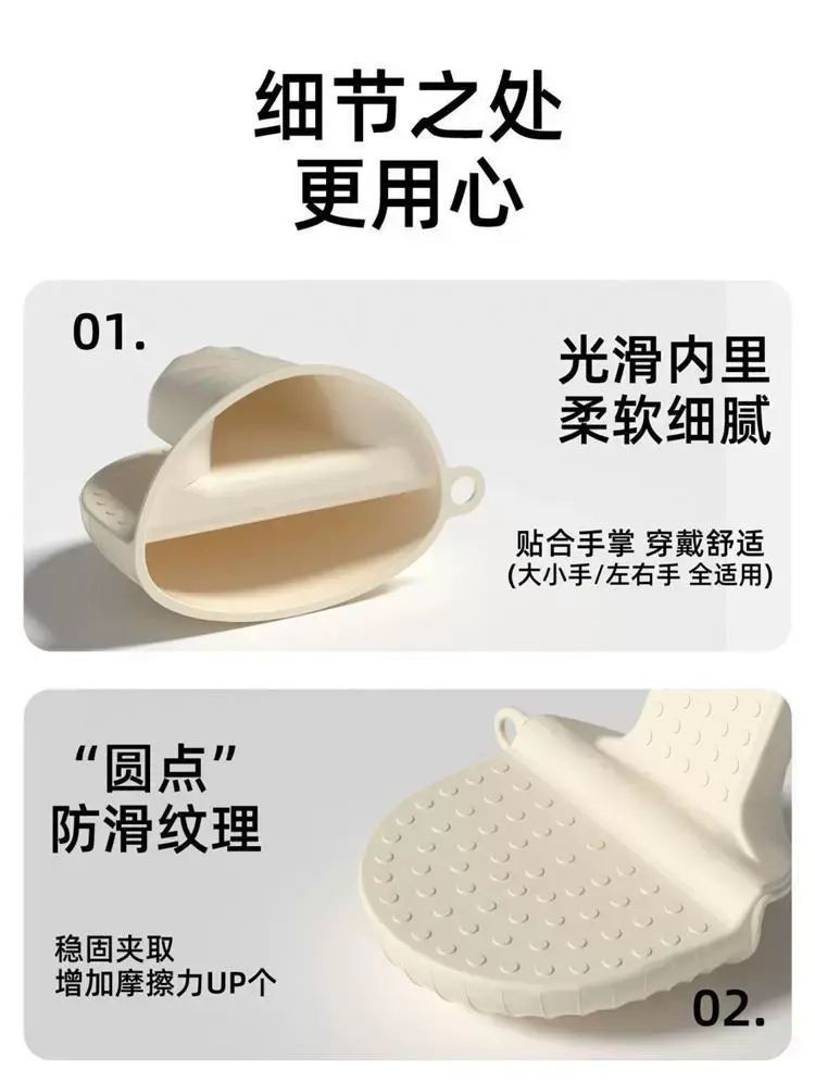 | Description | 防烫硅胶手套隔热手夹加厚厨房微波炉手套耐高温烤箱烘焙手套;;颜色分类:白色硅胶米一双装 |