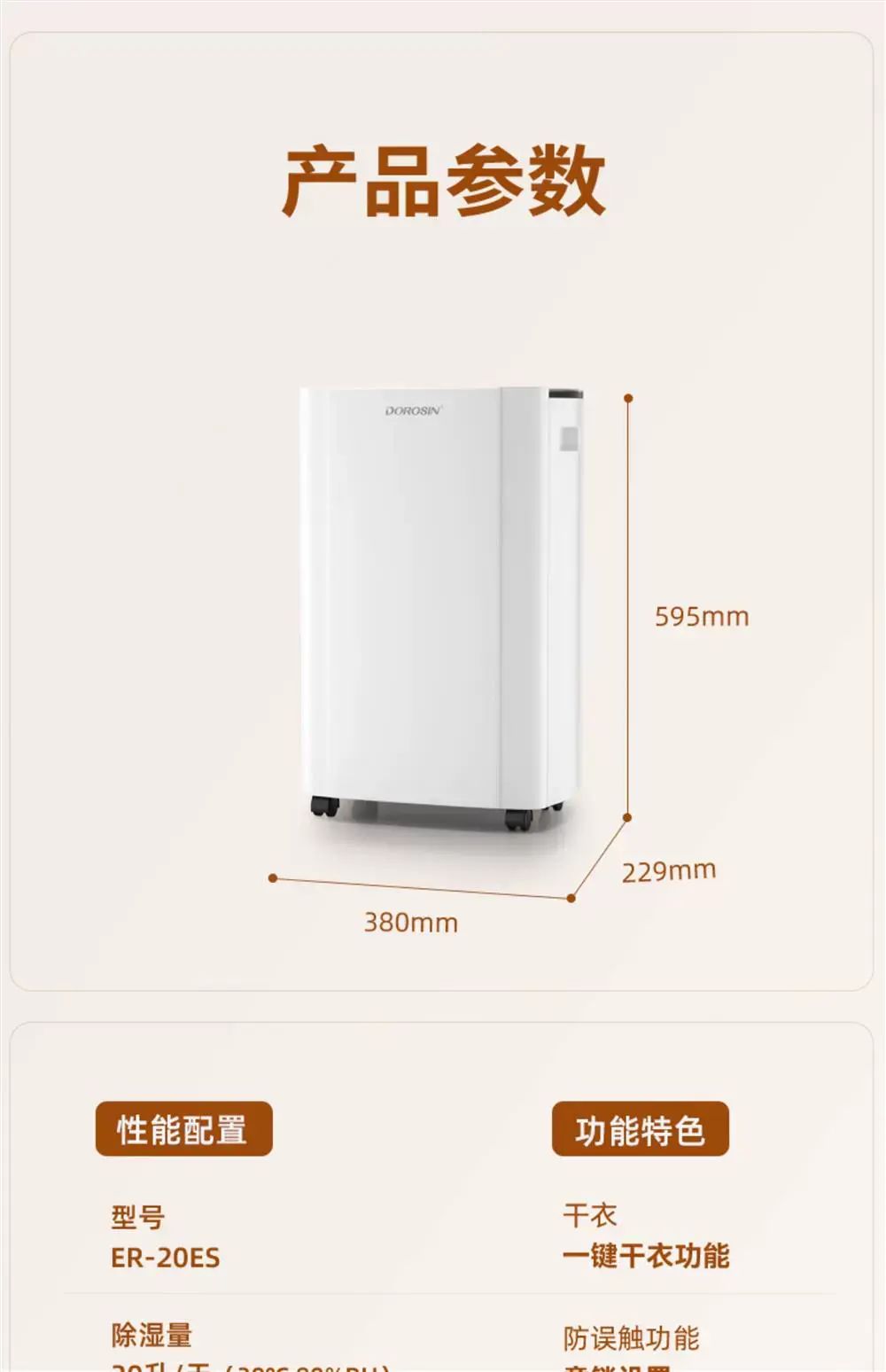 | Description | 除湿机家用除湿机客厅卧室别墅地下室干 干衣除湿机除湿吸湿器;;颜色分类:20L/天除湿量ER-20ES |