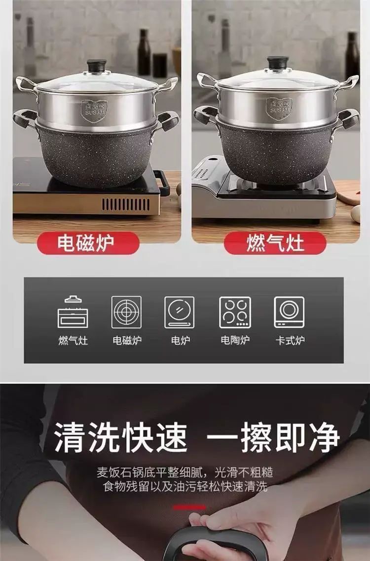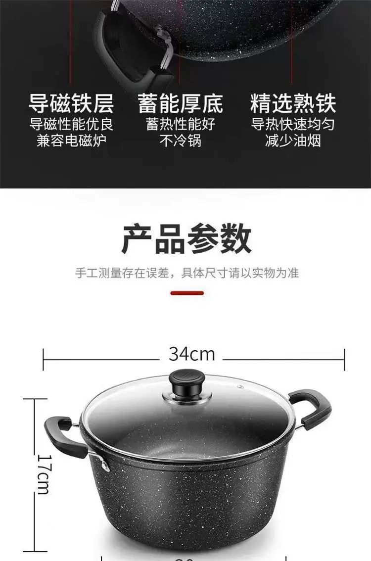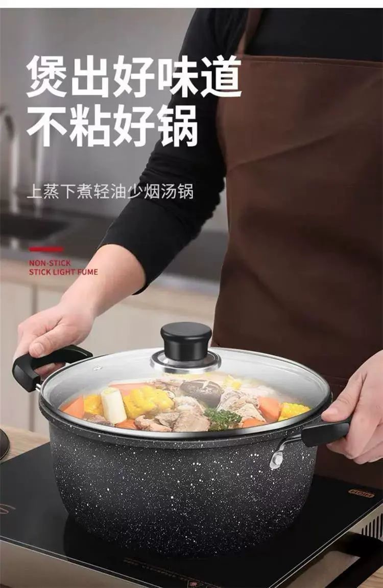 | Description | 双耳加厚汤锅煲汤炖锅煮粥专用锅麦饭石不粘锅家用煤气电磁炉;;颜色分类:22cm双耳麦饭石汤锅【带盖 |