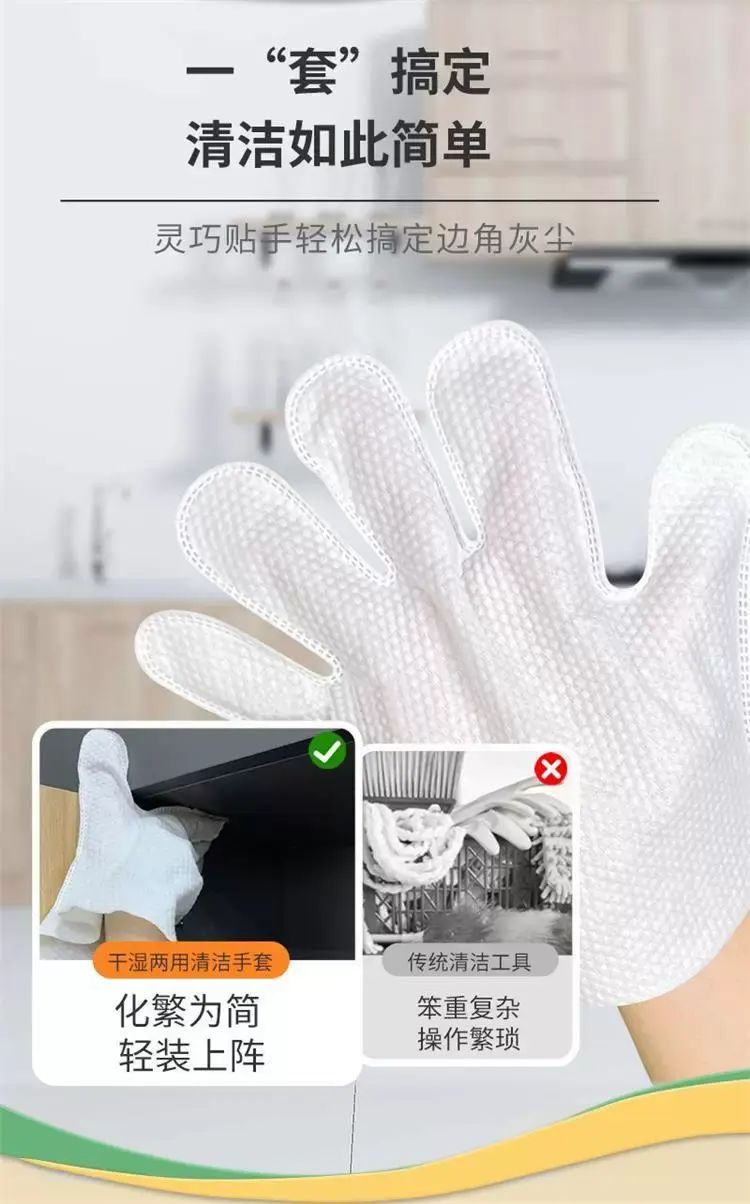 | Description | 5包x10片厨房清洁干湿手套懒人抹静电除尘吸附擦灰大扫除清洁神器;;颜色分类:1包x10片 |