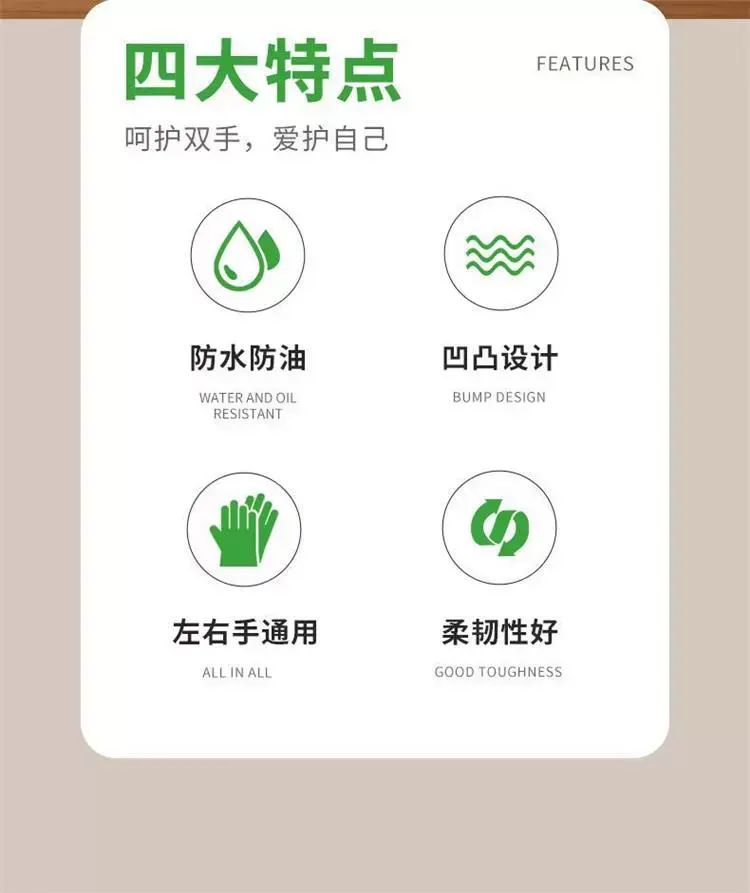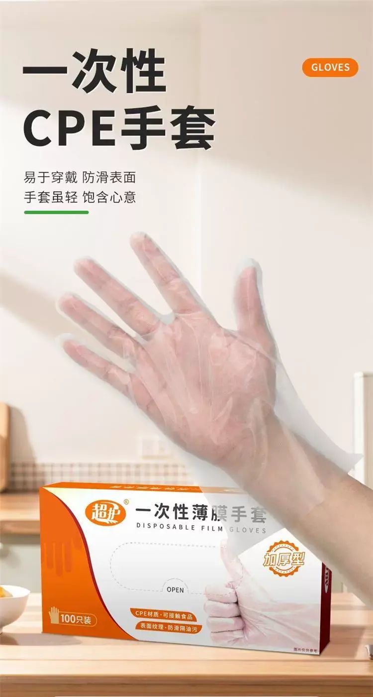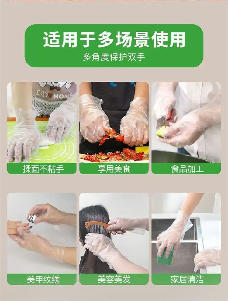 | Description | 500只一次性防菌食品级食用tpe加厚厨房烘焙餐饮家务防油防水手套;;颜色分类:加厚款CPE手套2克/只100只 |