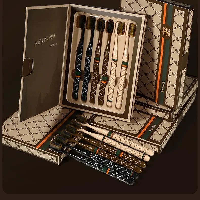 | Description | 【6支礼盒装】爆品轻奢牙刷家用超细中性毛成人宽头高颜值印花手;;颜色分类:【6支礼盒装】【3盒】 |