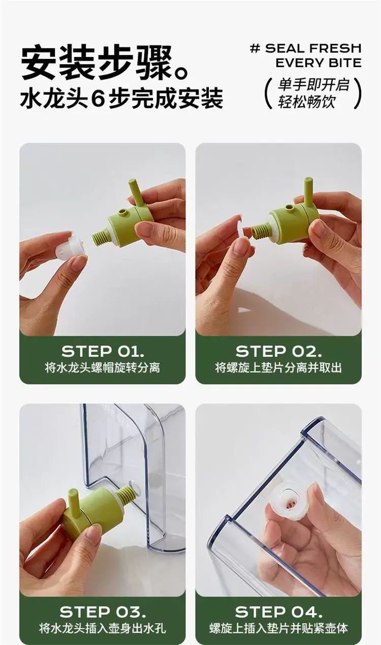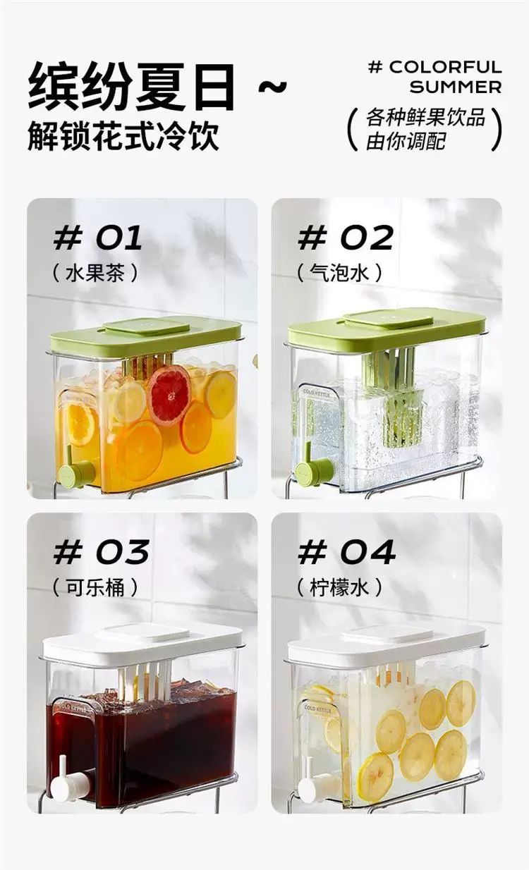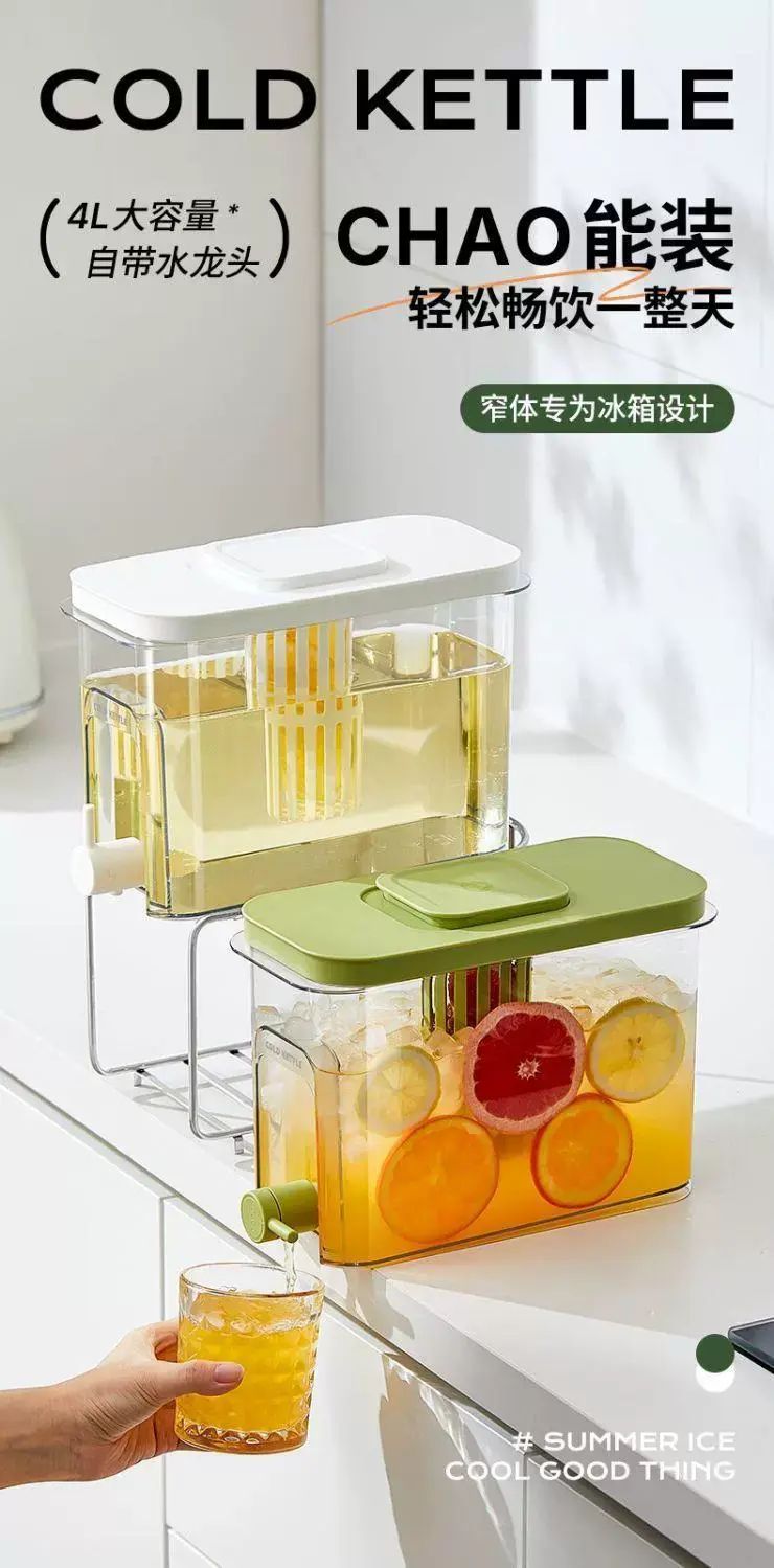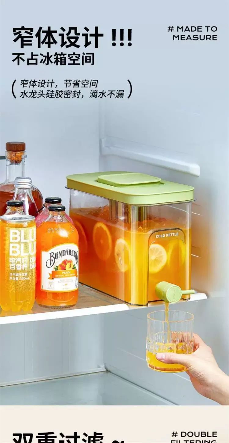 | Description | FaLeClean冰箱冷水壶家用储水冷泡壶饮料桶水果茶桶大容量凉水壶;;颜色分类:升级4L冰箱冷水壶【双重过滤】-绿色 |