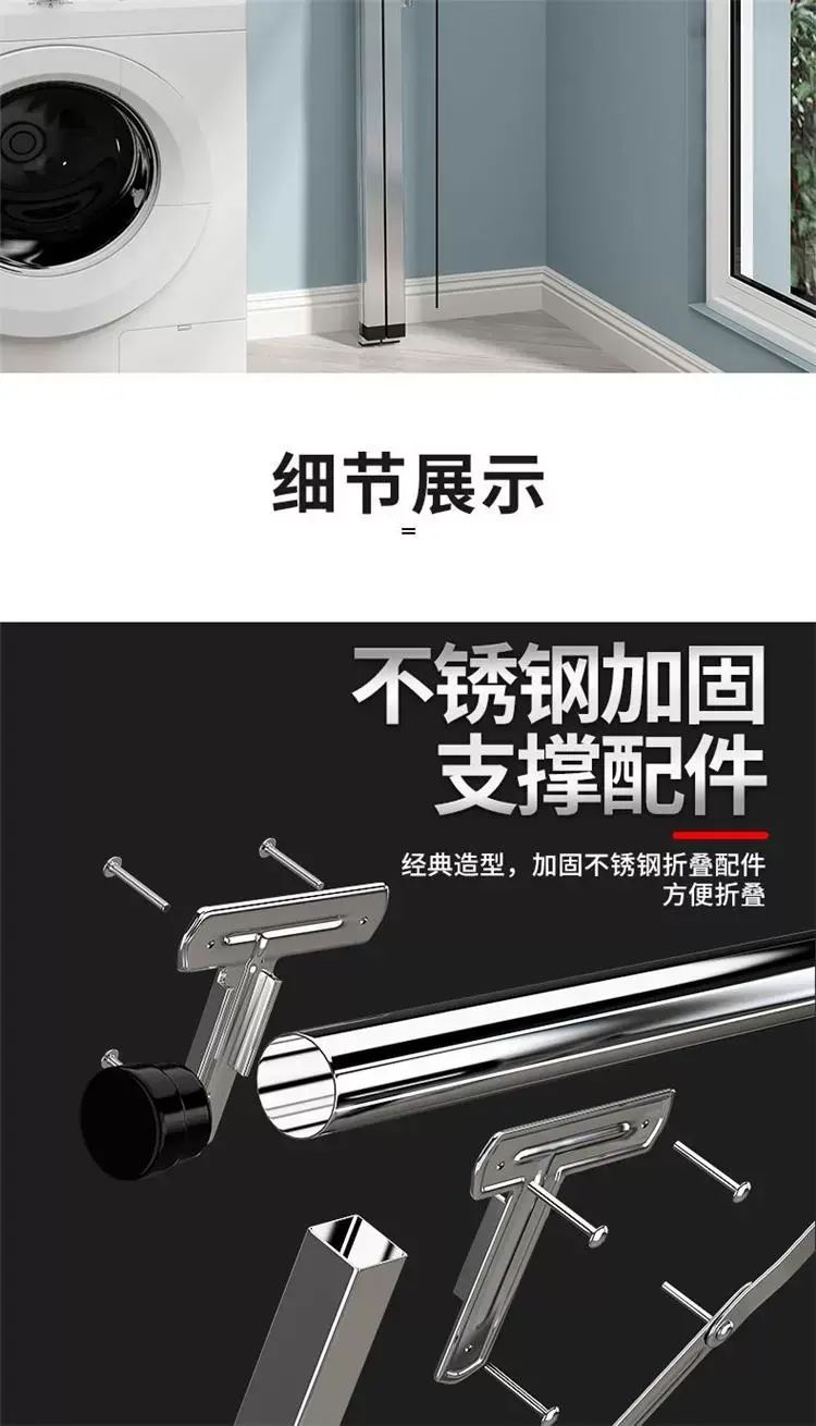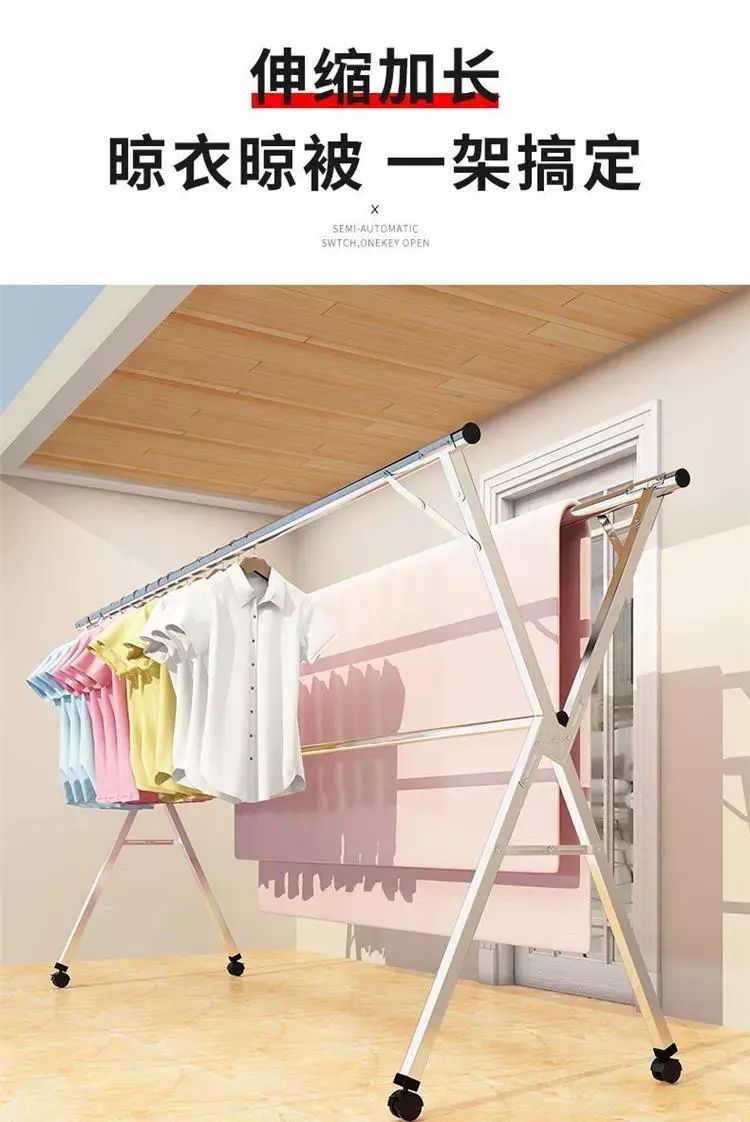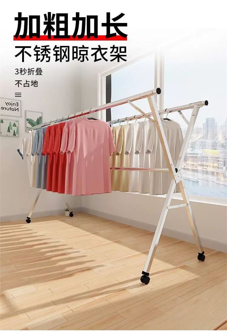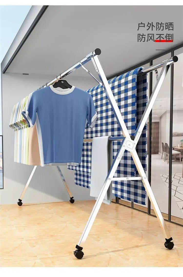 | Description | X型不锈钢落地晾衣架折叠室内外置地晒衣架双杆阳台伸缩晾衣杆;;颜色分类:全钢特粗特厚1.6米三杆+20防风扣+移动轮_免安装+可折叠+超强承重 |
