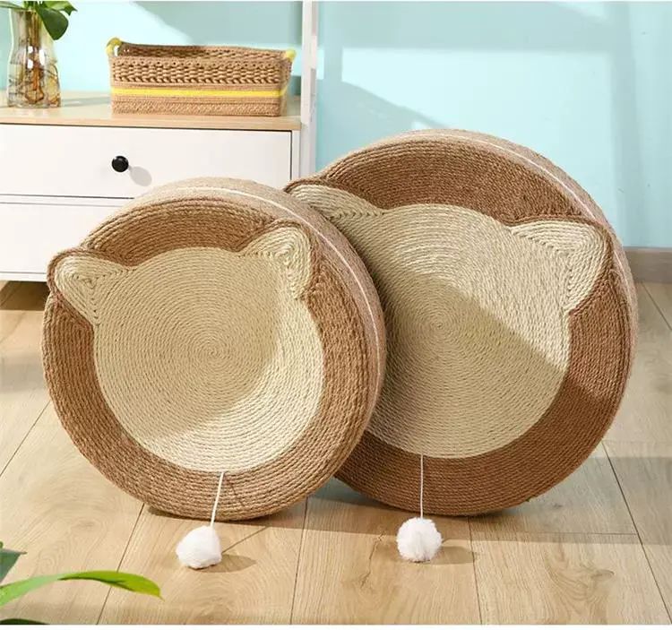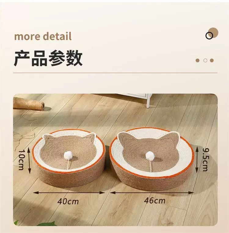 | Description | 剑麻猫爪板耐磨不掉屑耐抓猫爪板猫窝一体防猫抓沙发剑麻猫窝;;颜色分类:全麻猫头原色_直径40*10 |