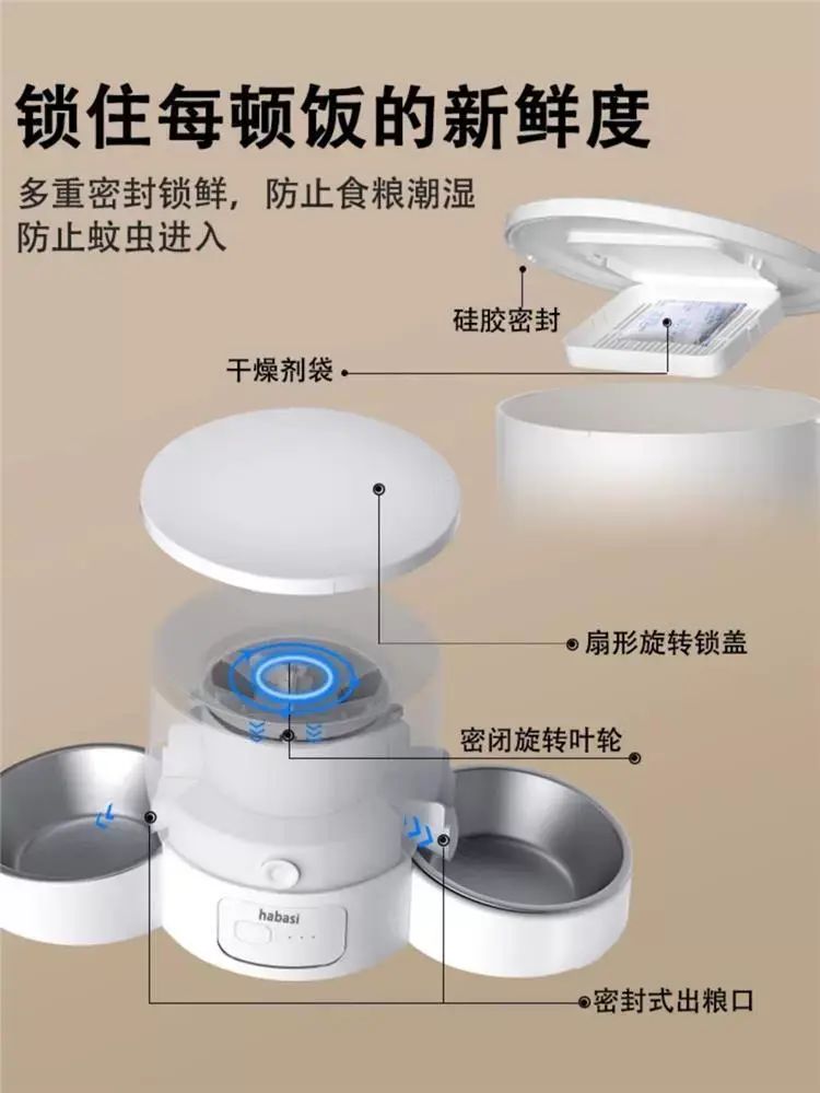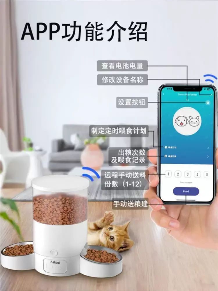 | Description | 哈巴斯宠物智能自动喂食器单双碗远程定时定量喂食投食器猫狗通用;;颜色分类:【单向碗槽】2.4G单频+WIFI联网款 |