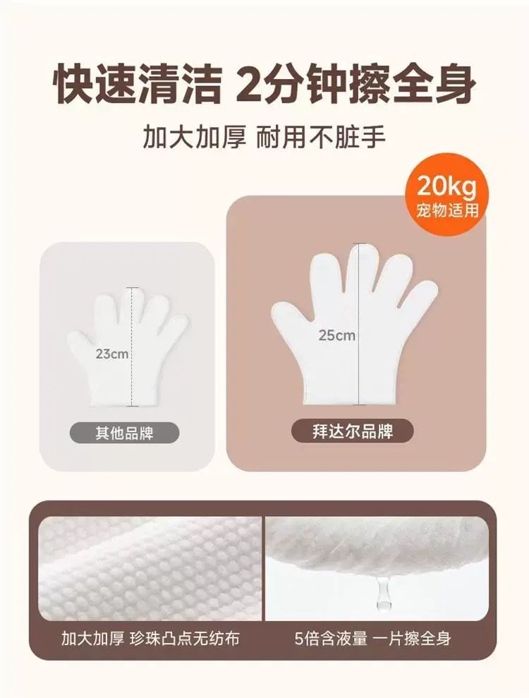 | Description | 宠物免洗手套洗澡抑菌湿巾猫咪狗狗除臭spa手套干洗清洁;;颜色分类:发2包20只 |