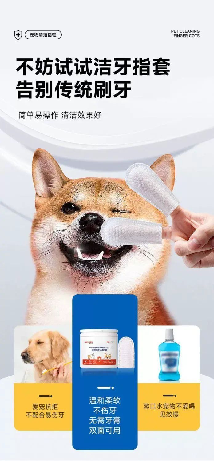 | Description | 宠物口腔清洁指套湿巾洁牙猫咪刷牙洁齿除口臭狗狗牙齿清洁;;颜色分类:宠物清洁指套*3盒【共150枚】 |