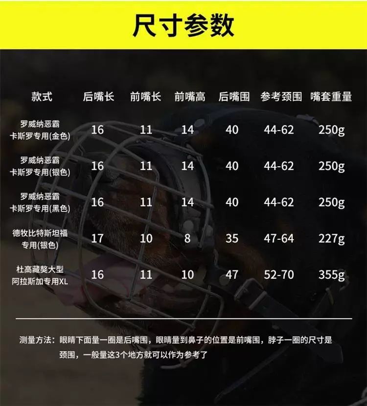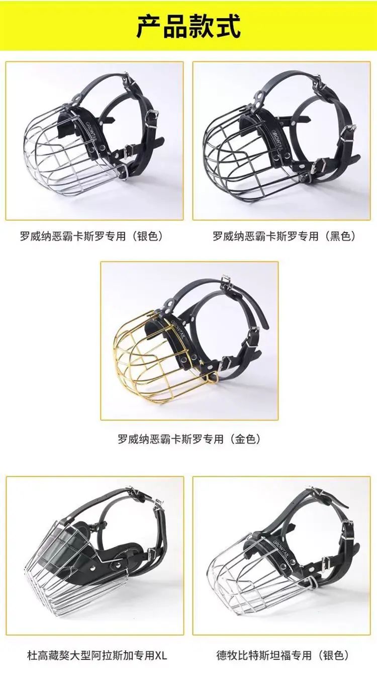 | Description | 狗狗嘴套罗威纳法斗比特嘴笼中大型犬马犬德牧口罩防咬防乱吃口笼;;颜色分类:罗威纳恶霸卡斯罗专用【银色】 |