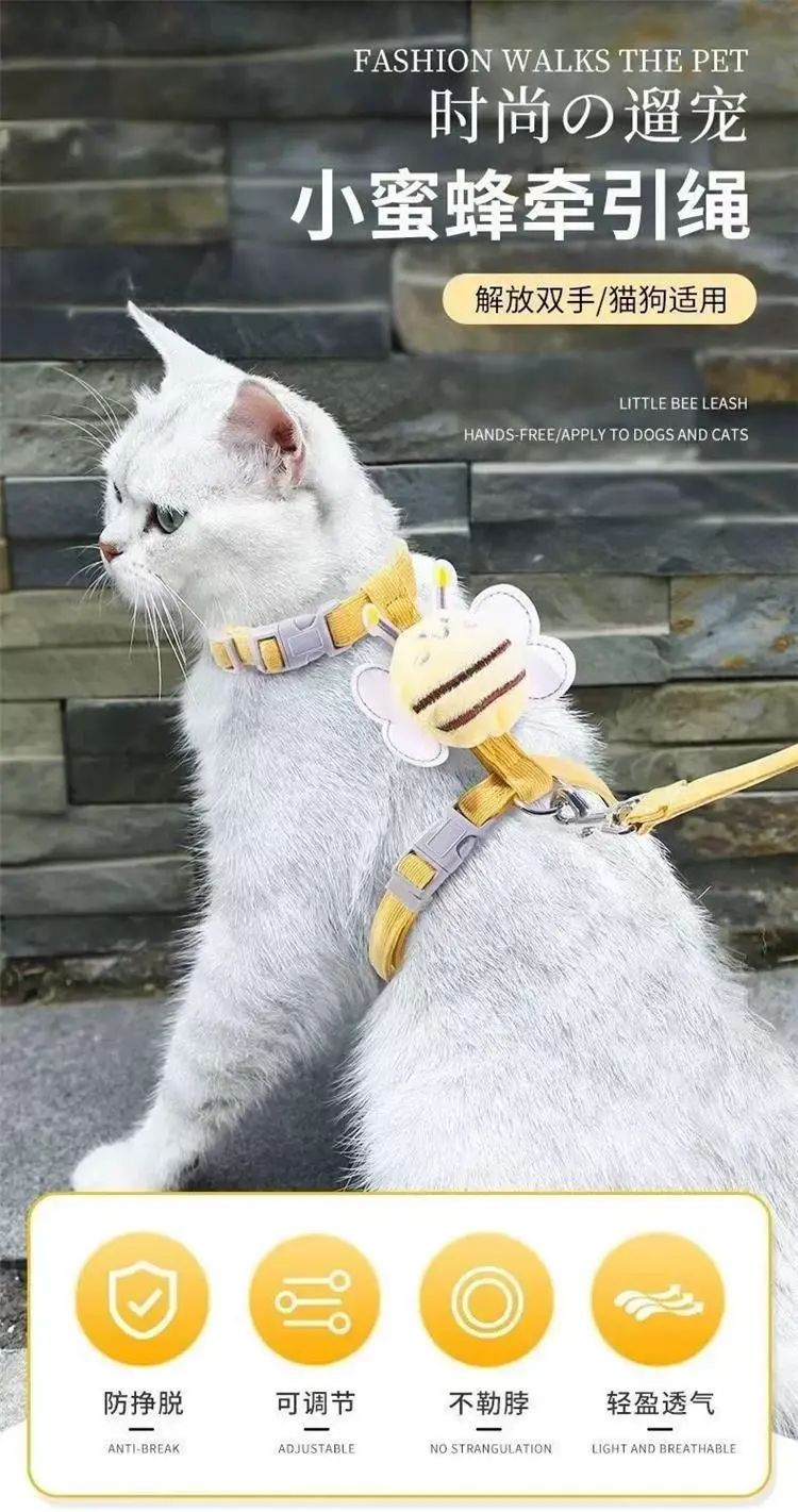 | Description | 猫咪蜜蜂牵引绳外出防脱工字可调节宠物专用布偶泰迪小型犬牵引绳;;颜色分类:春日小蜜蜂+1.8米牵引;适用尺码:标准 |
