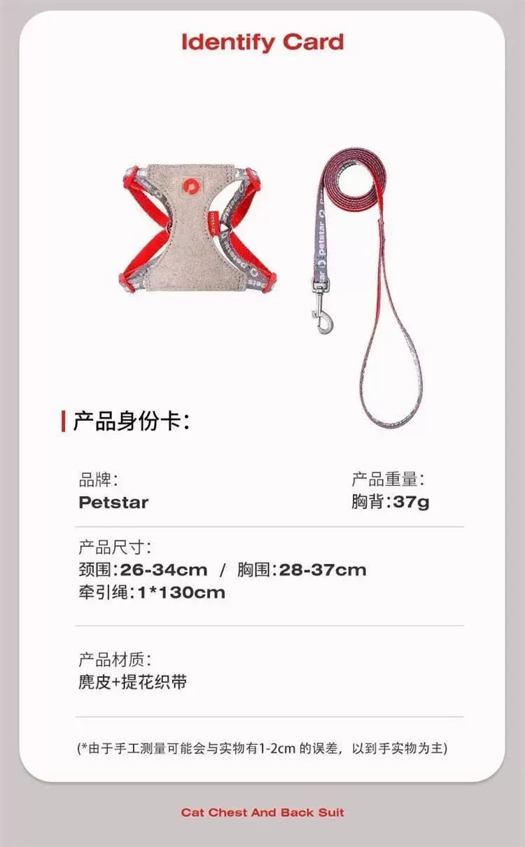 | Description | 猫牵引绳防挣脱外出专用小猫背心式溜猫绳;;颜色分类:【麂皮绒胸背带+1.3m |