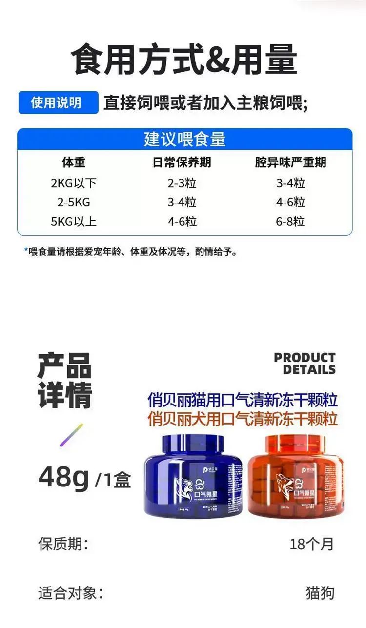 | Description | 2瓶96克口气清新冻干猫咪猫用狗氪星宠物口腔清洁除臭肠胃;;颜色分类:猫用_口气清冻干粒【48g】一瓶 |