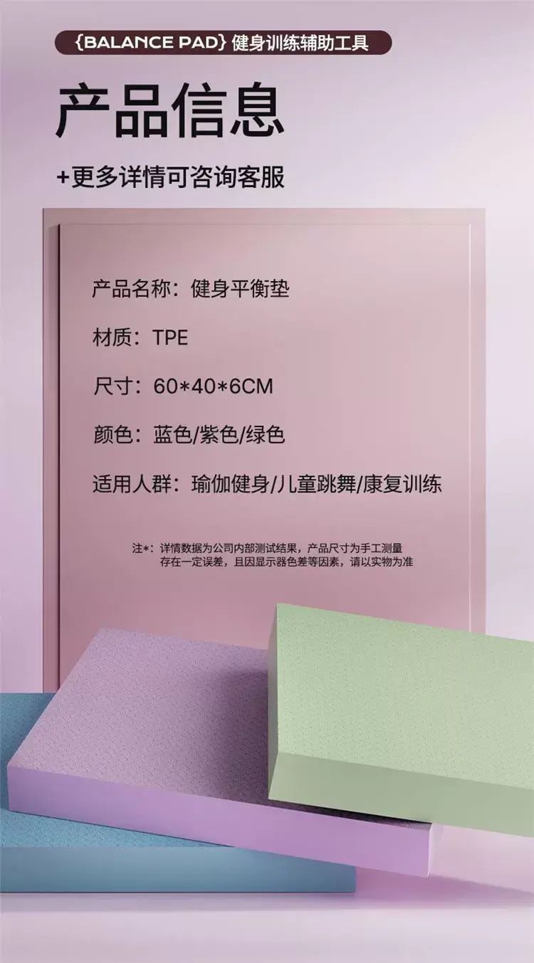 | Description | 平衡垫瑜伽平板支撑核心训练健腹轮健身防滑加厚体感隔音减震跪垫;;件数:【40*60*6.0CM】猫咪款;颜色分类:幽兰紫 |