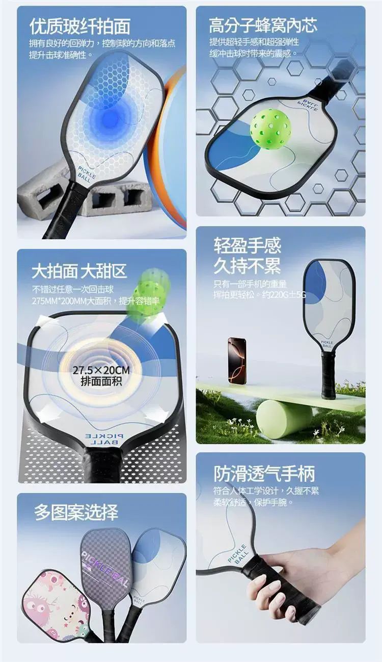 | Description | 皮克球拍双人Pickleball板碳纤维玻璃纤维运动球拍全套装板球板拍;;颜色分类:PICKLEBALL【碳纤维】赠球*2 |