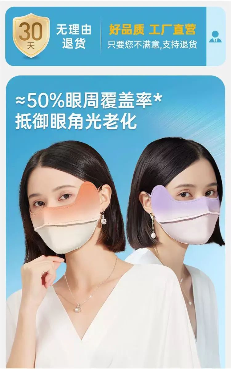 | Description | 防晒口罩女夏季防紫外线透气显瘦护眼角冰丝薄款防晒面罩户外遮阳;;颜色分类:无痕冰感-全遮光【北极灰】 |