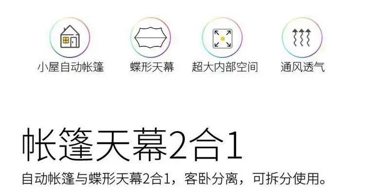 | Description | 露营帐篷户外装备新款天幕二合一便携式全自动加厚抗风防暴雨过夜;;颜色分类:【网红彩虹屋+合体天幕】9-11人_帐篷【送防水收纳包】 |