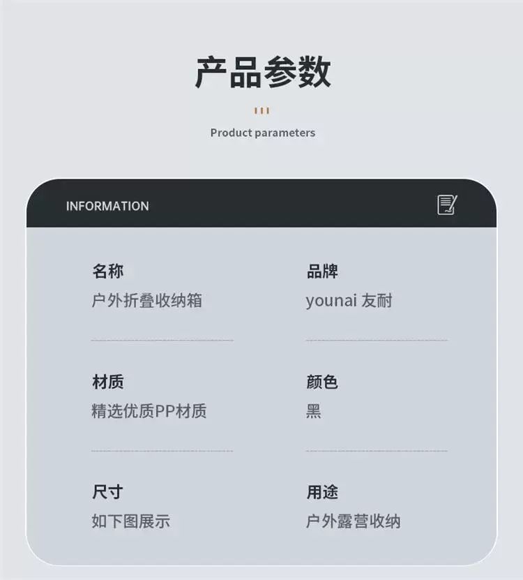 | Description | 黑化户外露营折叠收纳箱野营野餐零食整理箱车用后备箱工具储物箱;;颜色分类:经典款-黑色木盖大号32L+防水袋 |
