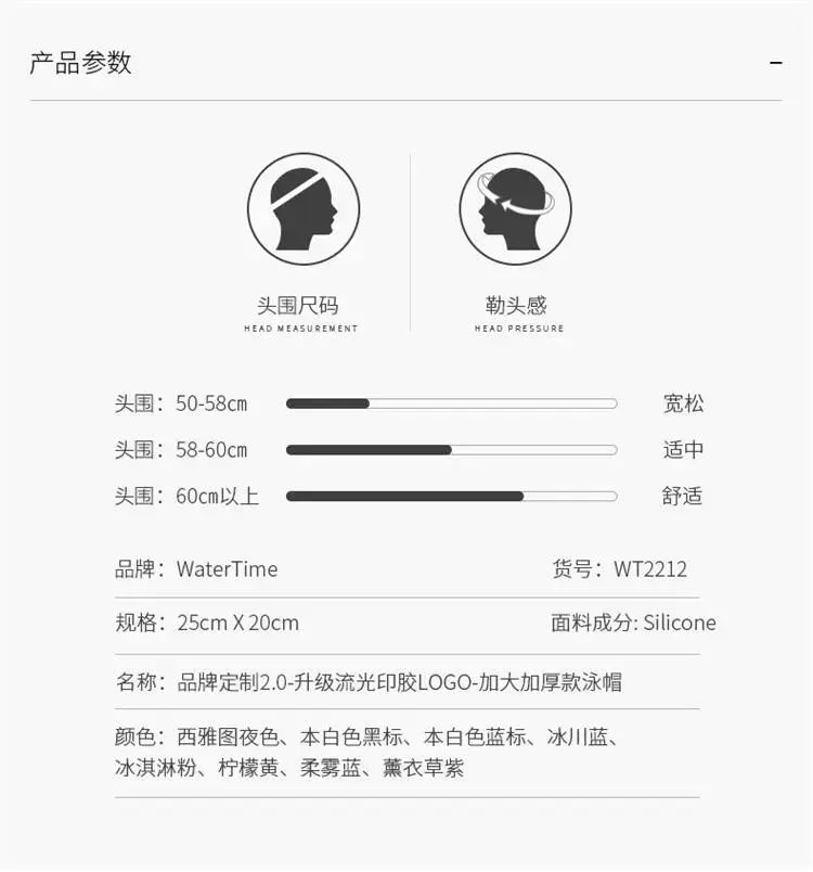| Description | WaterTime/水川游泳帽女不勒头加大护耳防水硅胶泳帽女款舒适帽子;;颜色分类:西雅图夜色. |