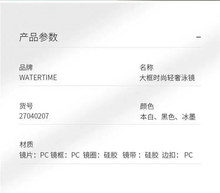 | Description | WaterTime泳镜防水防雾高清大框男女游泳眼镜近视眼镜帽套装专业;;颜色分类:淡紫色._平光无度数 |