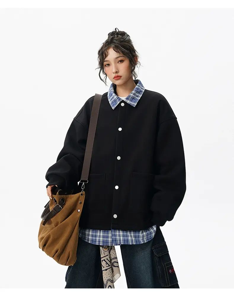 Description Zippered autumn jacket, sweatshirt, pointed collar, knitted long sleeves;;Size: S;Color: Black