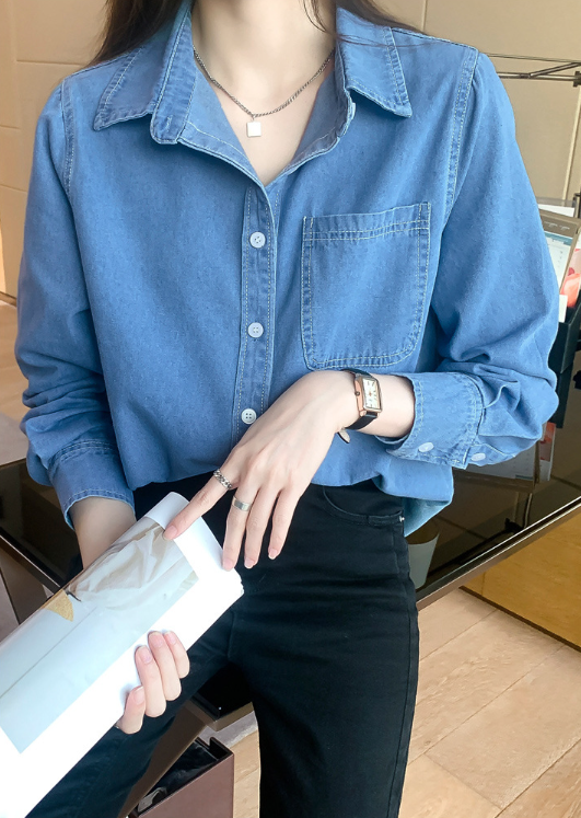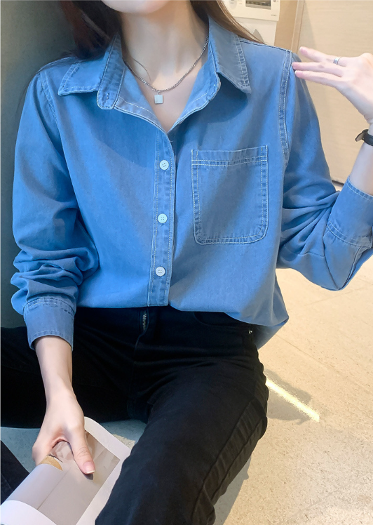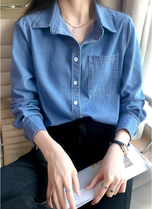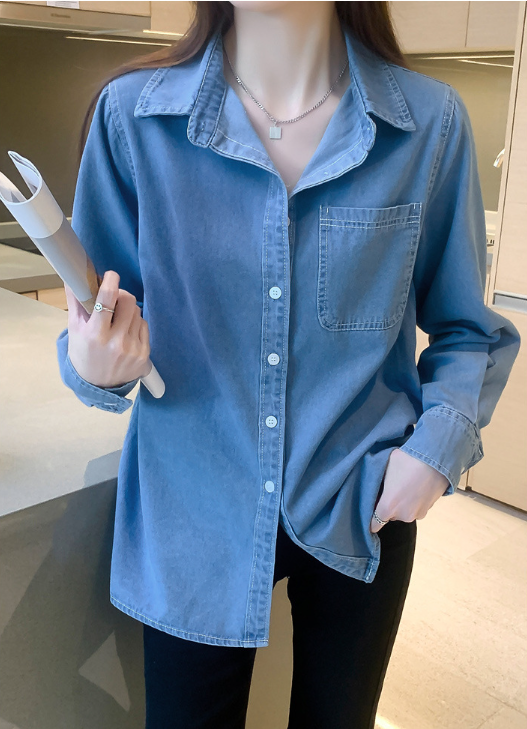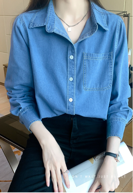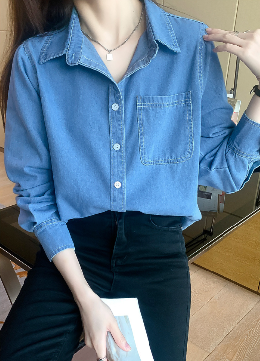 牛仔襯衫(淺藍色)(規格:S-XL碼)(下單後聯絡客服確認發貨尺碼) #F047050082