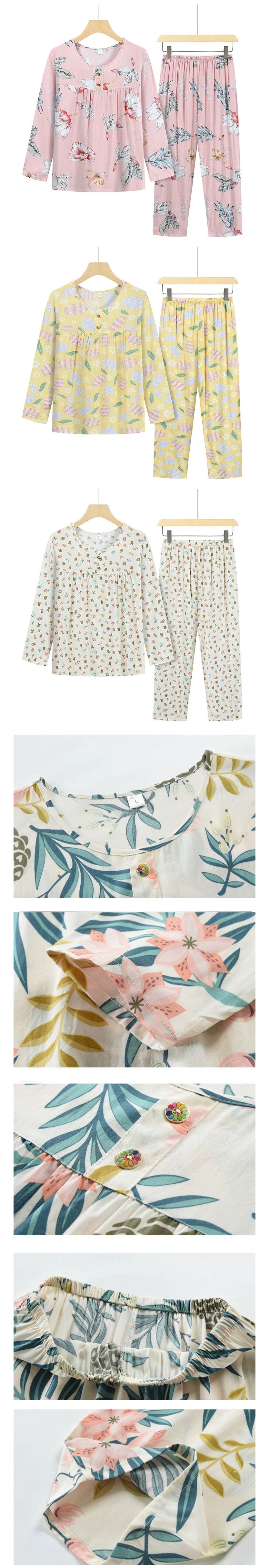 中老年居家長袖套裝( L-2XL碼 黃底花朵雲)【下單後請聯絡客服確認發貨尺碼】F001099325