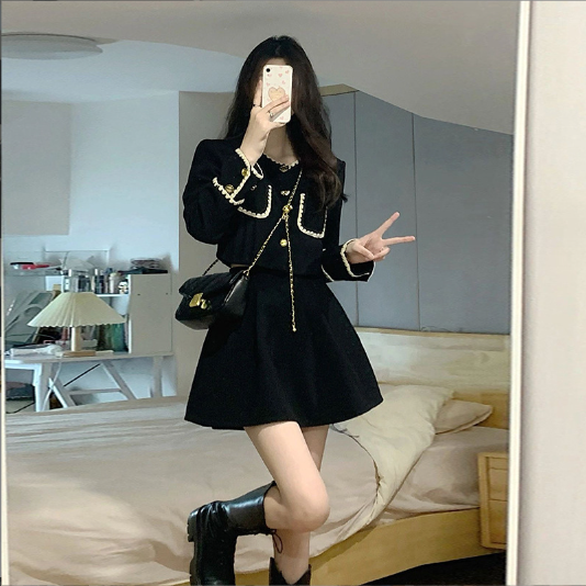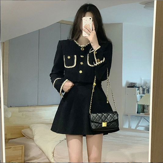 外套半身裙套裝(黑色)(規格:S-XL碼)(下單後聯絡客服確認發貨尺碼) #F047050330