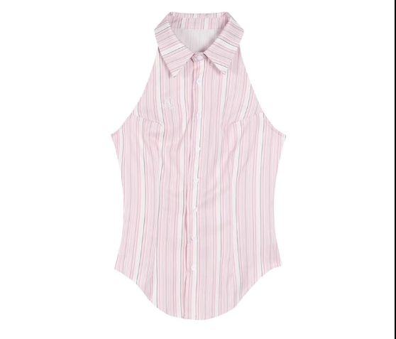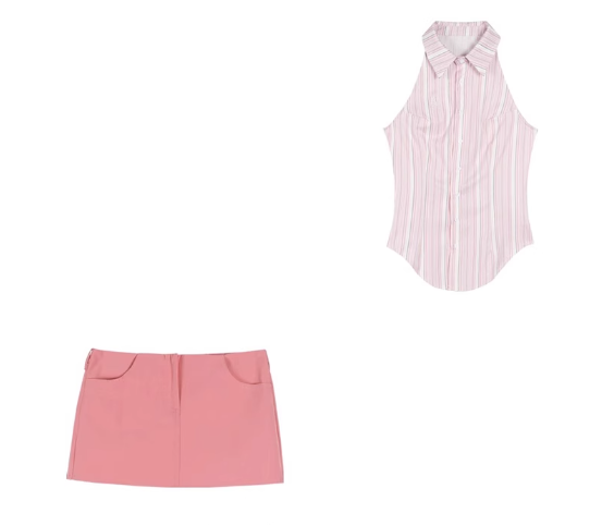 Polo領條紋小吊帶背心半身裙兩件套(粉色襯衫背心+粉色半身裙)(規格:S-L碼)(下單後聯絡客服確認發貨尺碼)#F047043950
